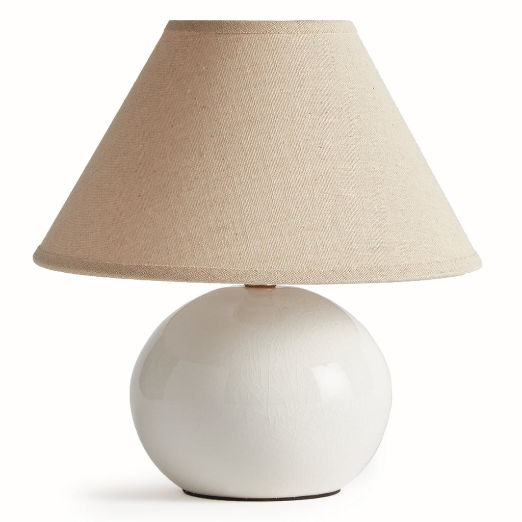 With a white crackle glazed body and light linen shade, this lamp is a handsome fixture. At just around 10 inches tall, it's perfect for home office desk, side table or even a narrow console or dresser.
