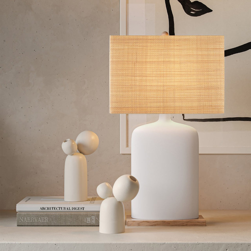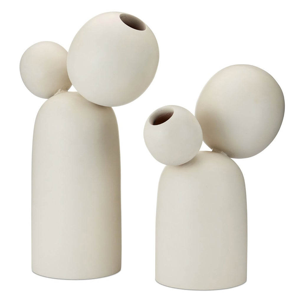The Currey & Co Ensemble Object Set includes two sculptures with mod profiles made of mango wood and finished in ivory. The geometric shapes that coalesce to make up their profiles bring the decorative accessories a hint of whimsy, and the staggered sizes make them perfect for pairing in a vignette or on a shelf.