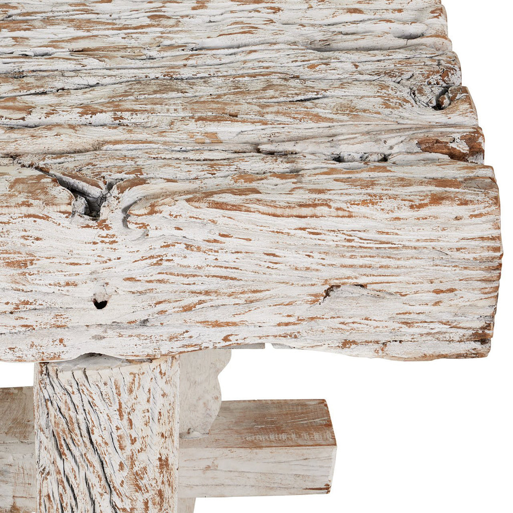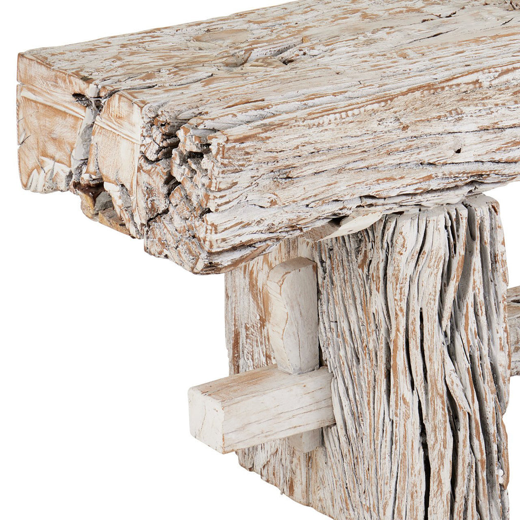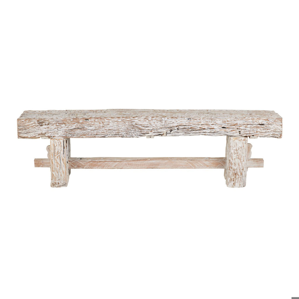 The Currey & Co Holland Bench is a sustainable piece, made from aged reclaimed wood that has been whitewashed, bringing its surfaces tremendous personality. The trestle design uses mortise and tenon joinery, and not two pieces will be exactly alike. This piece is meant to be placed indoors only.