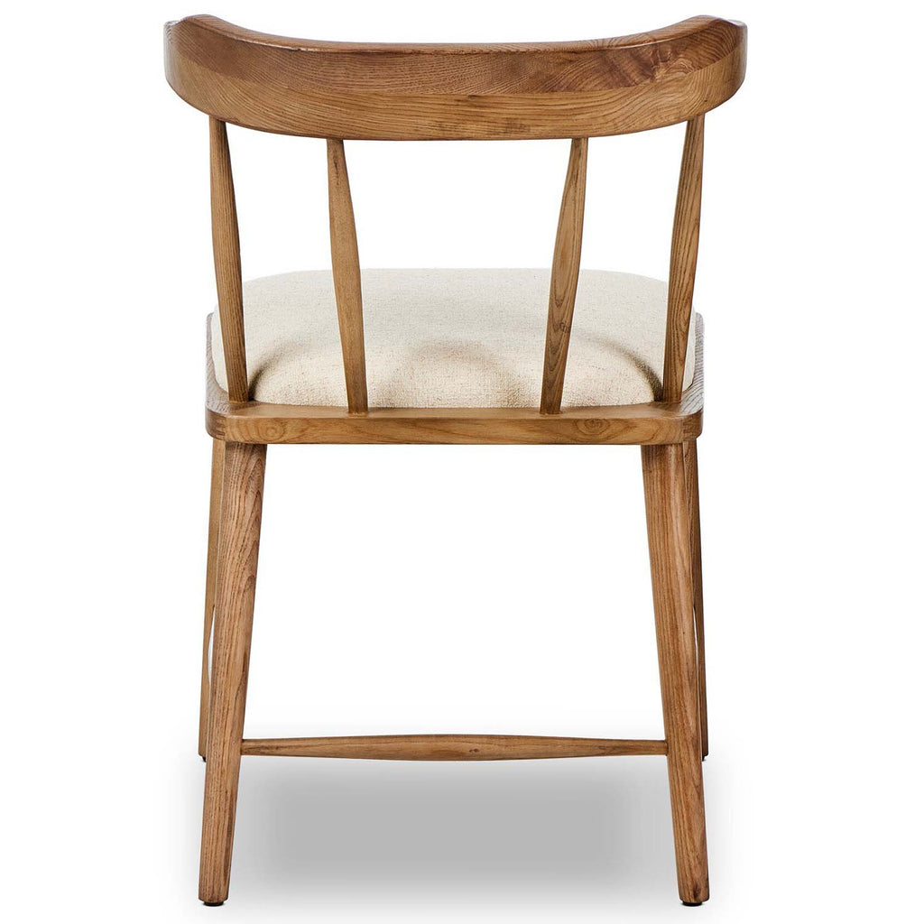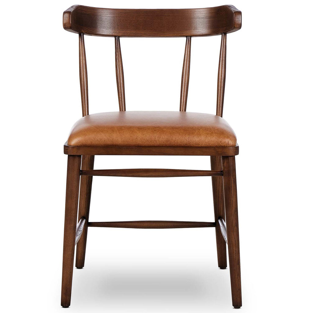 Made from solid ash with a vintage finish, this versatile dining chair pairs an airy back with tapered spindles, for a simple, inviting look. Fixed upholstered seat of high-performance fabric or top-grain leather adds a fresh, comfortable touch.