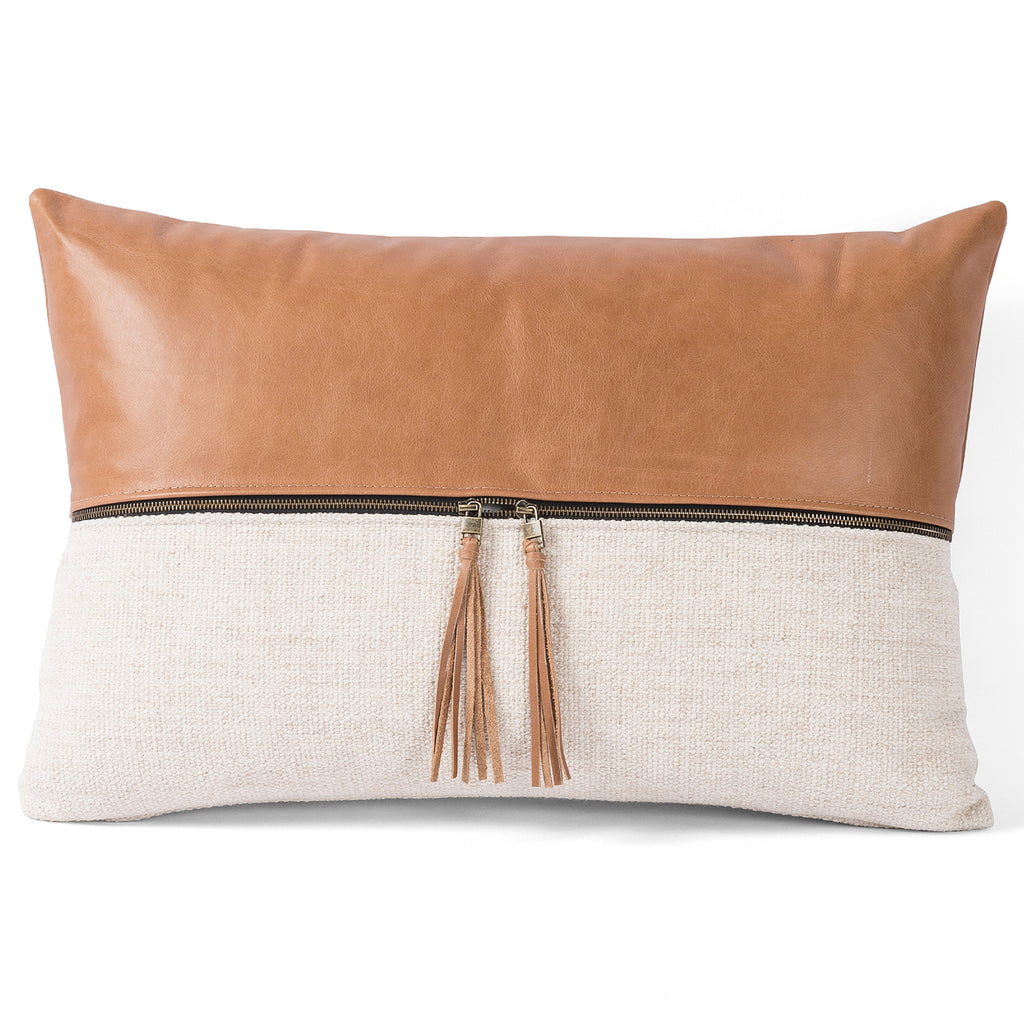Four Hands Leather and Linen Throw Pillow - Final Sale