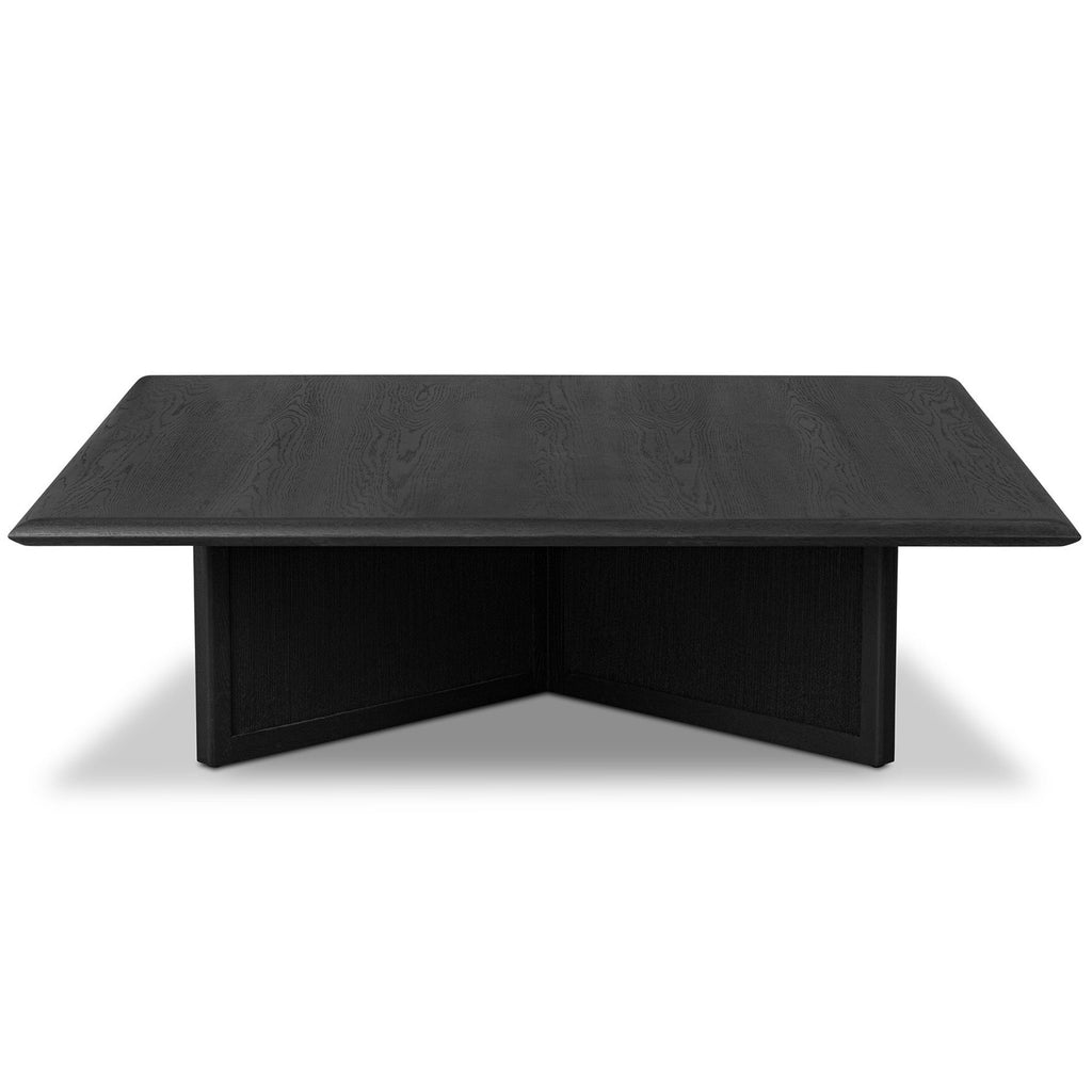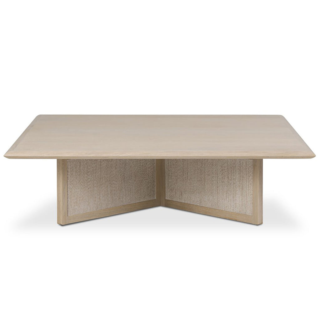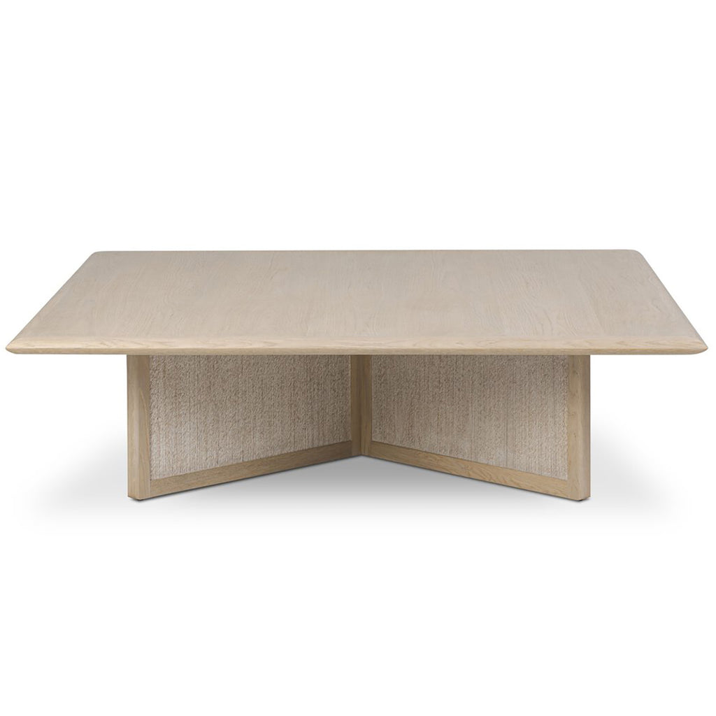 Anchor your living space with a squared coffee table of oak. A smooth top pairs with a panel-style base of woven paper cord for a rich, clean look that will work into your collection beautifully.