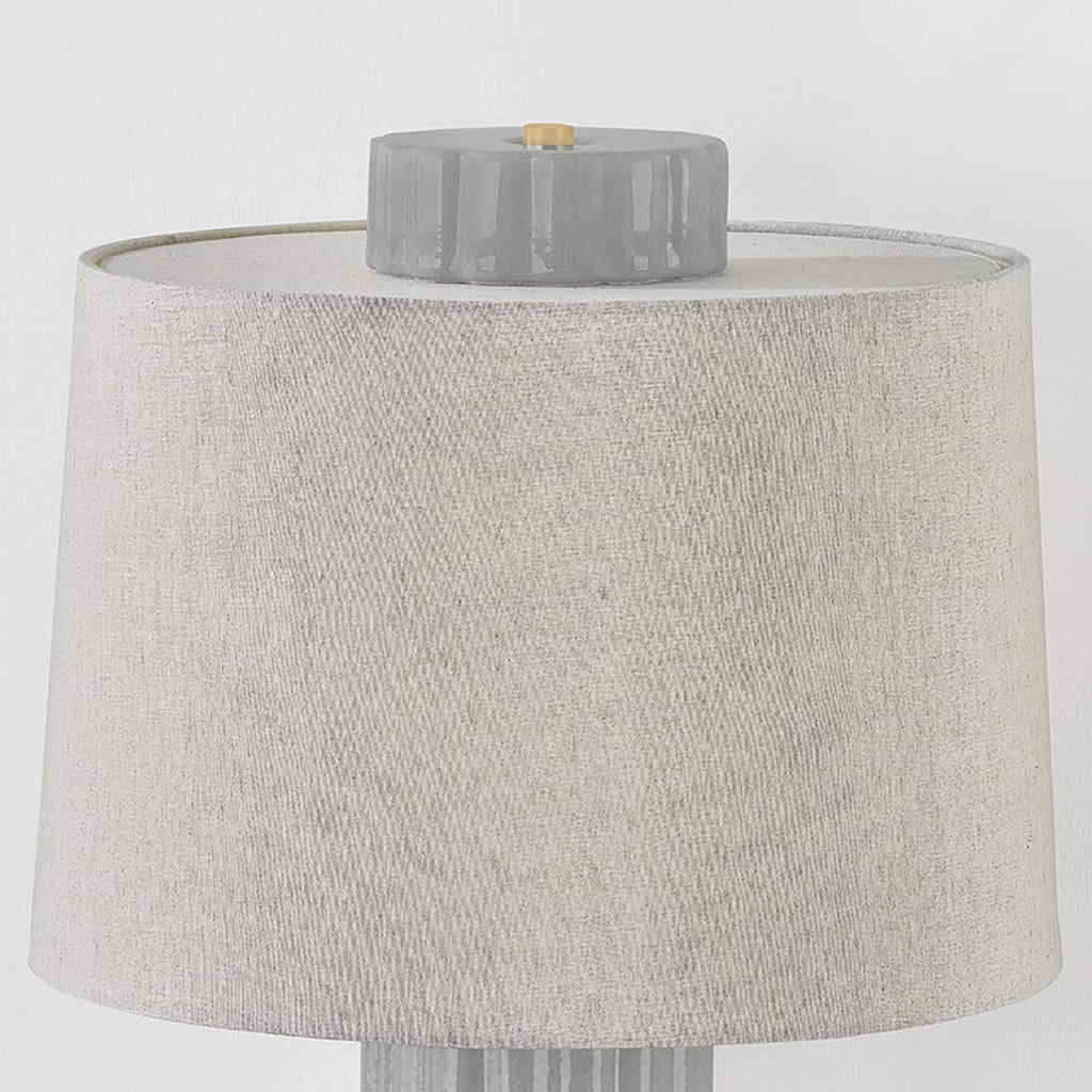 Drawing inspiration from the grandeur of the columns of ancient Greece, the Hudson Valley Lighting Manchester lamp serves as a contemporary essential for transitional spaces. The slender ceramic base features whimsical fluting and a shell gray finish, lending an artisanal quality. The base’s narrow diameter is contrasted by the visual weight of the large natural linen drum shade.