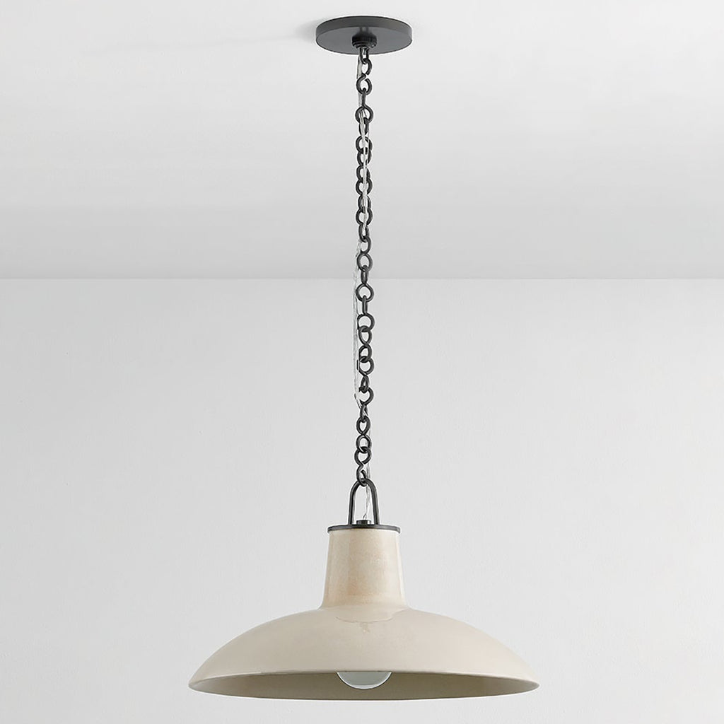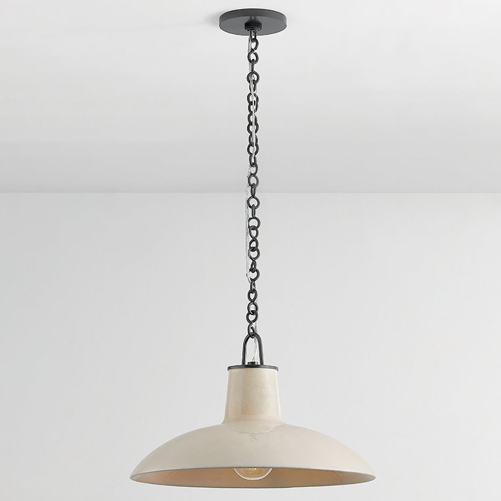 Taking cues from mid-century fixtures, the forms of the Hudson Valley Lighting Pottersville family are kept intentionally simple to serve as canvases for the dynamic glaze techniques of highly skilled Vietnamese potters. The graphic yet subdued glazes impart a highly artisanal feel, bringing artistry into a kitchen, hallway, or bedroom. Pottersville is available as a pendant in two sizes and a 1-light wall sconce.