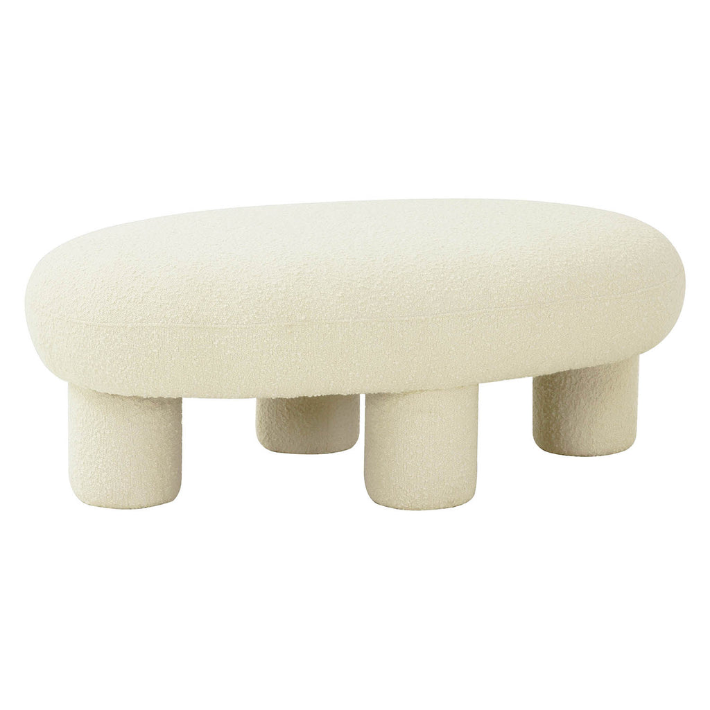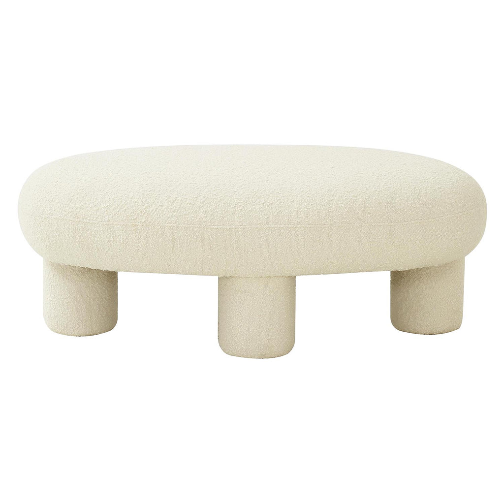 Trendy and chic, this ottoman is all the rage! This stylish piece features a fully upholstered kiln-dried pine frame and is perfect to use as a footrest, coffee table or an extra seat. Complement your living room with this one of a kind cozy textured boucle ottoman.