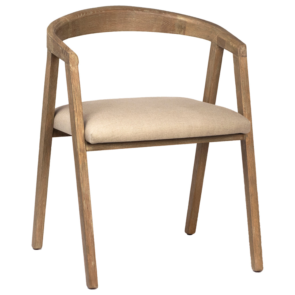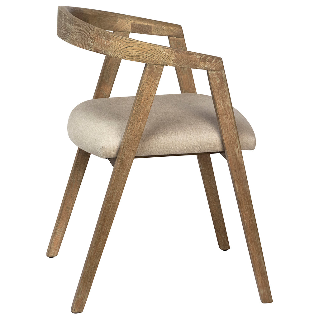 An organic spin on a classic, mid-century dining chair. Crafted from oak wood, it features a low curved back and expressively arched details that offer a nice view from an angle.
