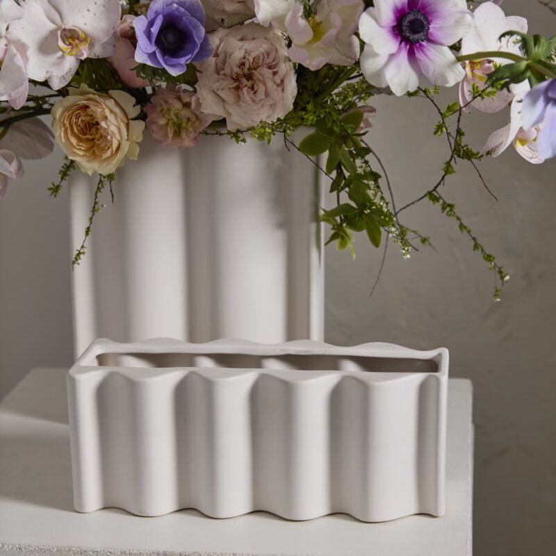 Give florals a playful sensibility with the fresh design & wavy silhouette of the ceramic Movement Vase, featuring a hand glazed finish & tall, slim design for indoor or outdoor statement arrangements.