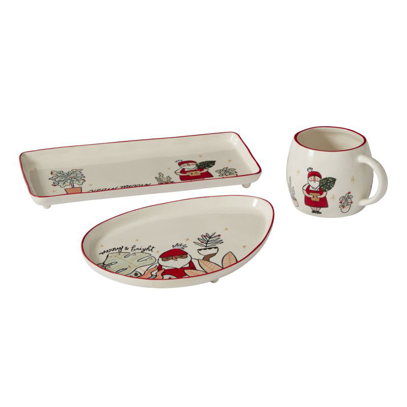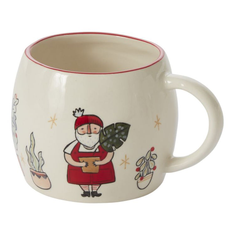 Little known fact: Santa's helpers include his beloved plants & his coffee. The ceramic Planta Mug is an ode to Santa's favorite things with hand painted house plants across the surface & features a rounded shape, red glazed rim & shiny finish.