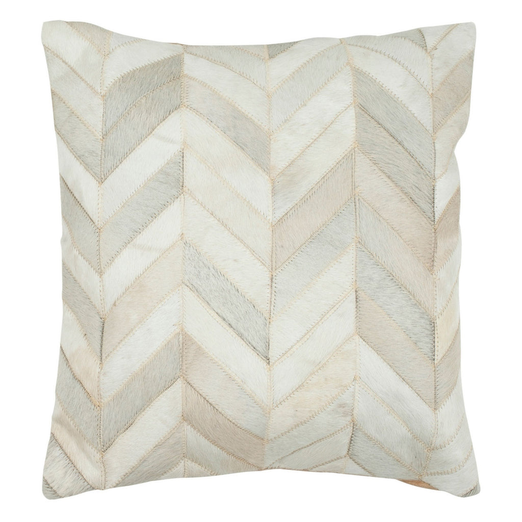 Distinctive and sophisticated, this cowhide accent pillow is crafted of strips of beautifully textured cowhide artfully stitched to create a chevron motif in softly contrasting shades of white. Accent your sofa, chair, or chaise with Marley, which comes with solid back suede. Sold as set of two.