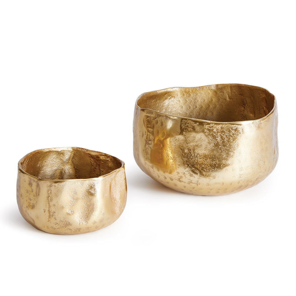 With a modern, organic shape and natural hammered texture, this set of two cachepots are a breath of fresh air. The perfect complement to a lush green or coveted orchid.