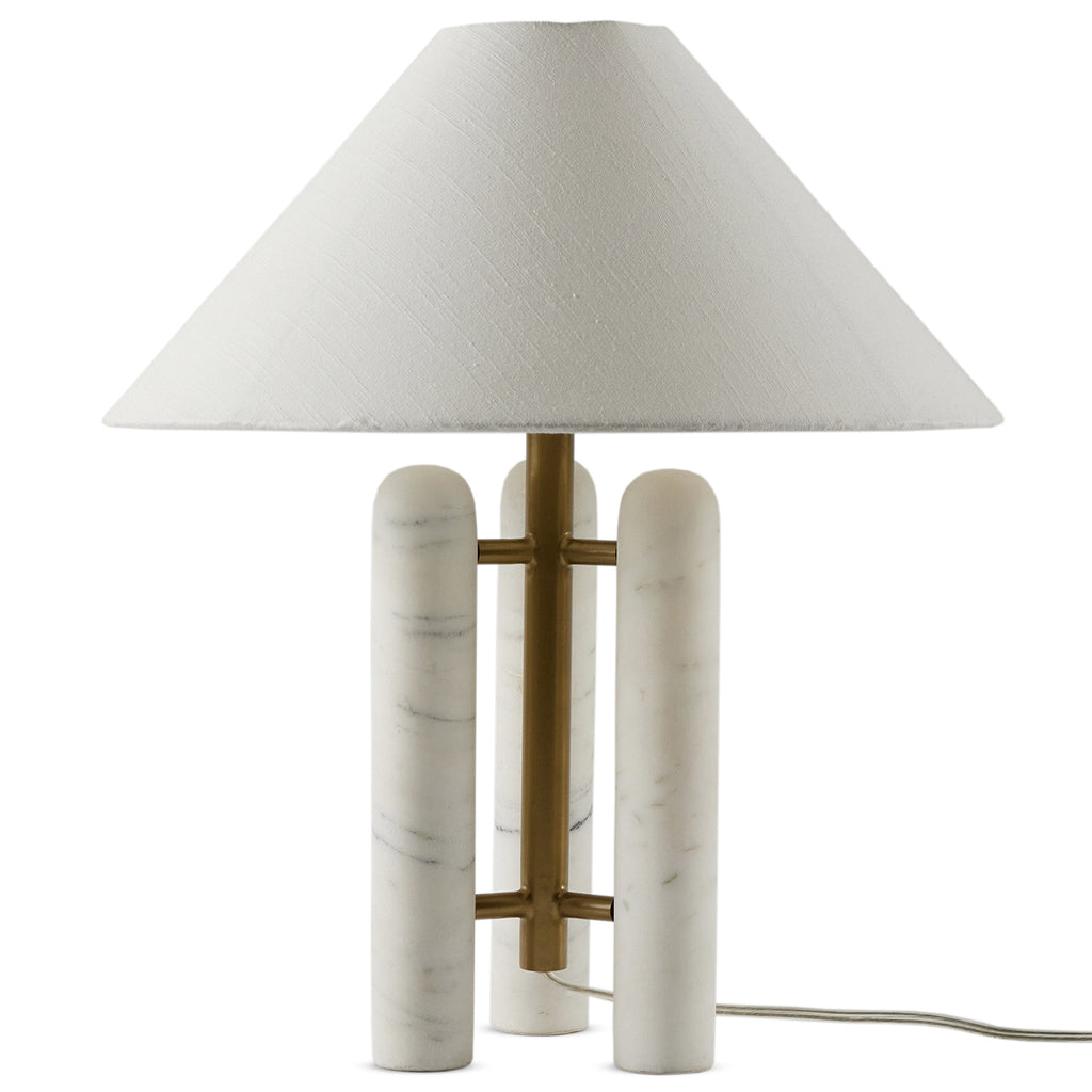Reminiscent of the marble columns found throughout Italy, this stunning table lamp features three smooth Italian marble pillars, reminiscent of the marble columns found throughout Italy.