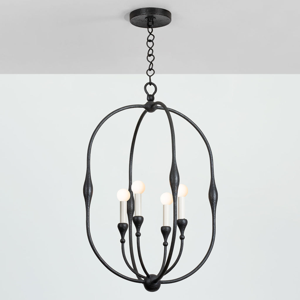 Renowned for built-to-last quality with a timeless feel, Hudson Valley offers a modern lighting collection with elegant touches, recalling vintage inspiration. Rooted in French design aesthetics, this chandelier features an oval hanging frame with three or four candle lights, radiating a warm and inviting glow from within. A blend between a lantern and a globe, this design reinterprets a classic silhouette to align with modern preferences for open and airy fixtures. Baltic is available in two sizes and two finishes; Vintage Gold Leaf or Aged Iron.