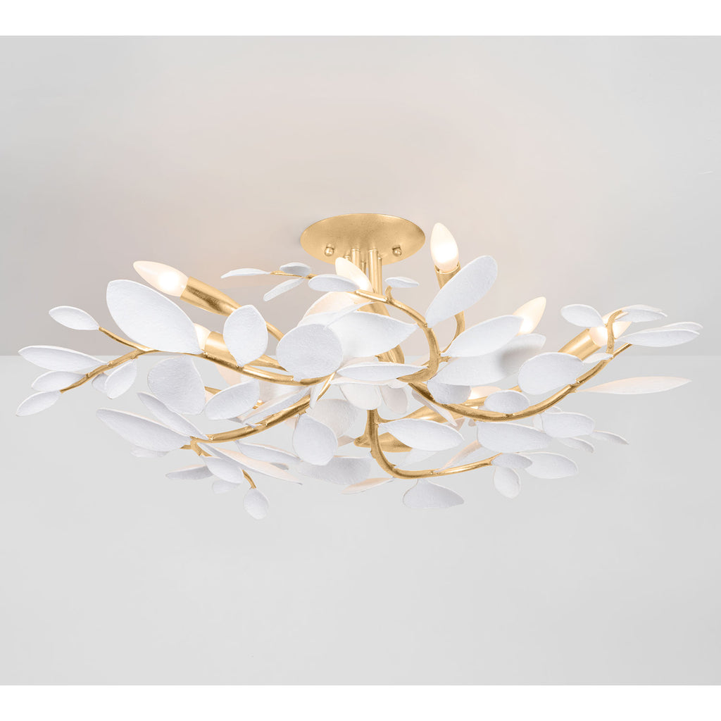 Renowned for built-to-last quality with a timeless feel, Hudson Valley offers a modern lighting collection with elegant touches, recalling vintage inspiration. A sophisticated take on a vine-inspired motif, Marabec shines with natural grace. Leaves sculpted from white plaster provide a clean, modern feel extending from warm Gold Leaf branches. The delicately curved framework imparts a sense of movement, energizing interior spaces. Available as a semi-flush in two sizes or as a wall sconce.