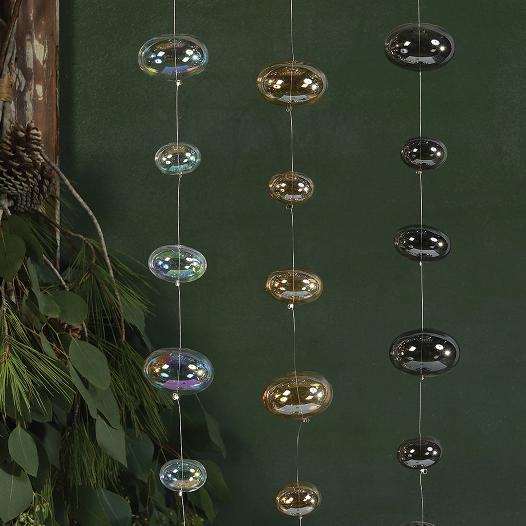 Our delicate Glass Ball Strands evoke the mood of an ice-filled holiday celebration and look like just-blown bubbles caught on a string. Available in 3 shimmering colors.