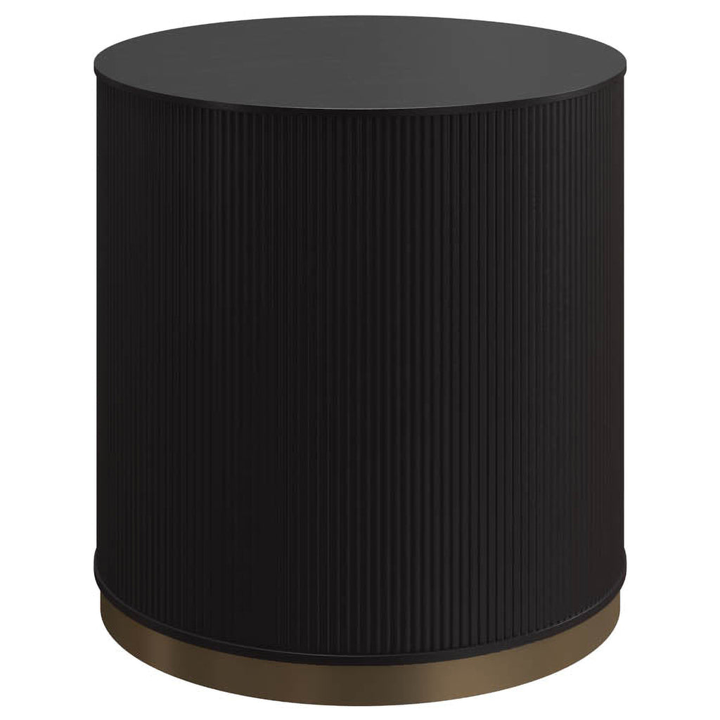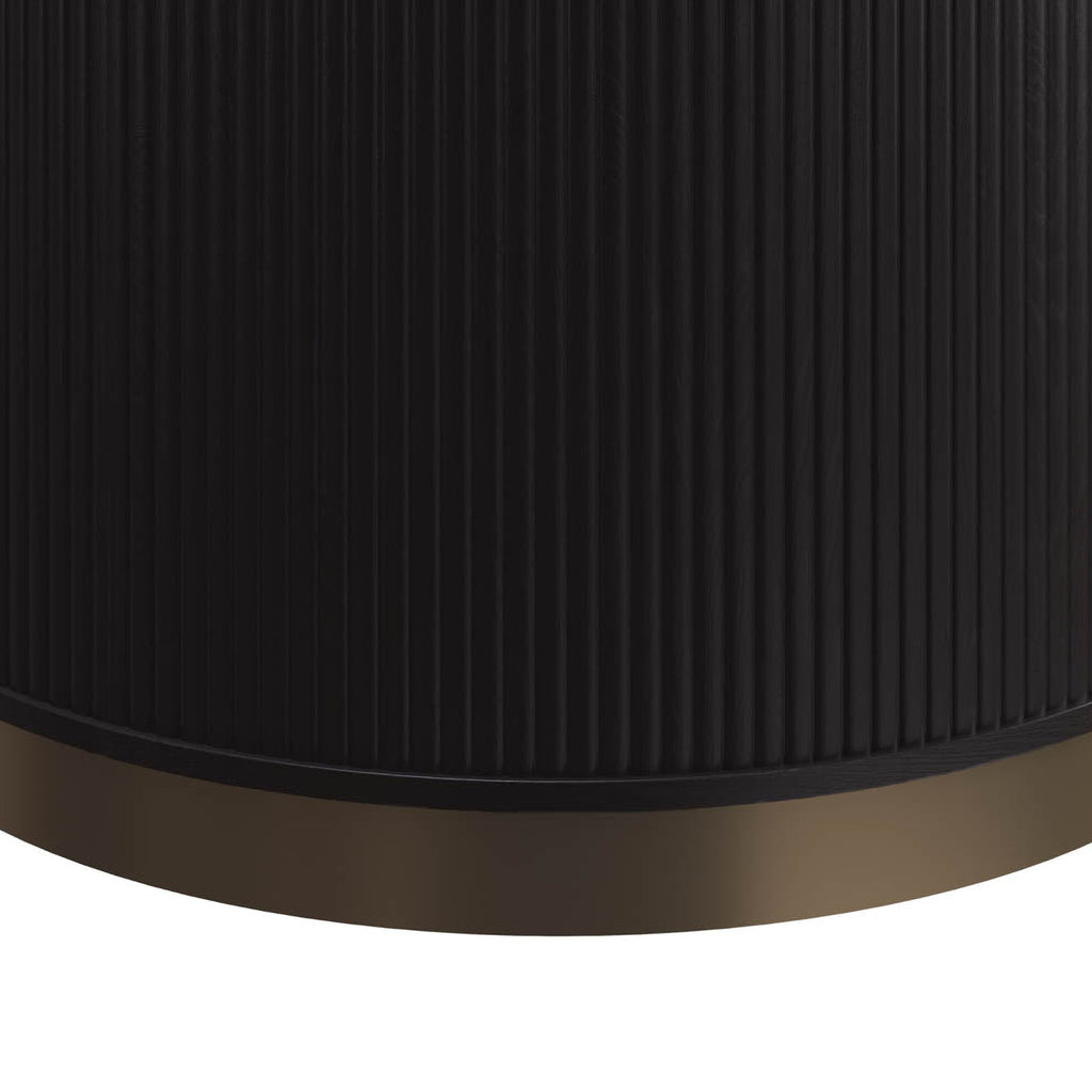The Kalla Side Table brings form and function to life. Crafted with a rustic oak veneer with vertical reeding. A gold steel base finishes the look. As wood is an organic, porous material, these pieces will contain natural variation of texture and may also exhibit fine indentations and cracks. Wood pieces will also display a disparity of color and grain, and visible knots and burls that add to the character of each piece.