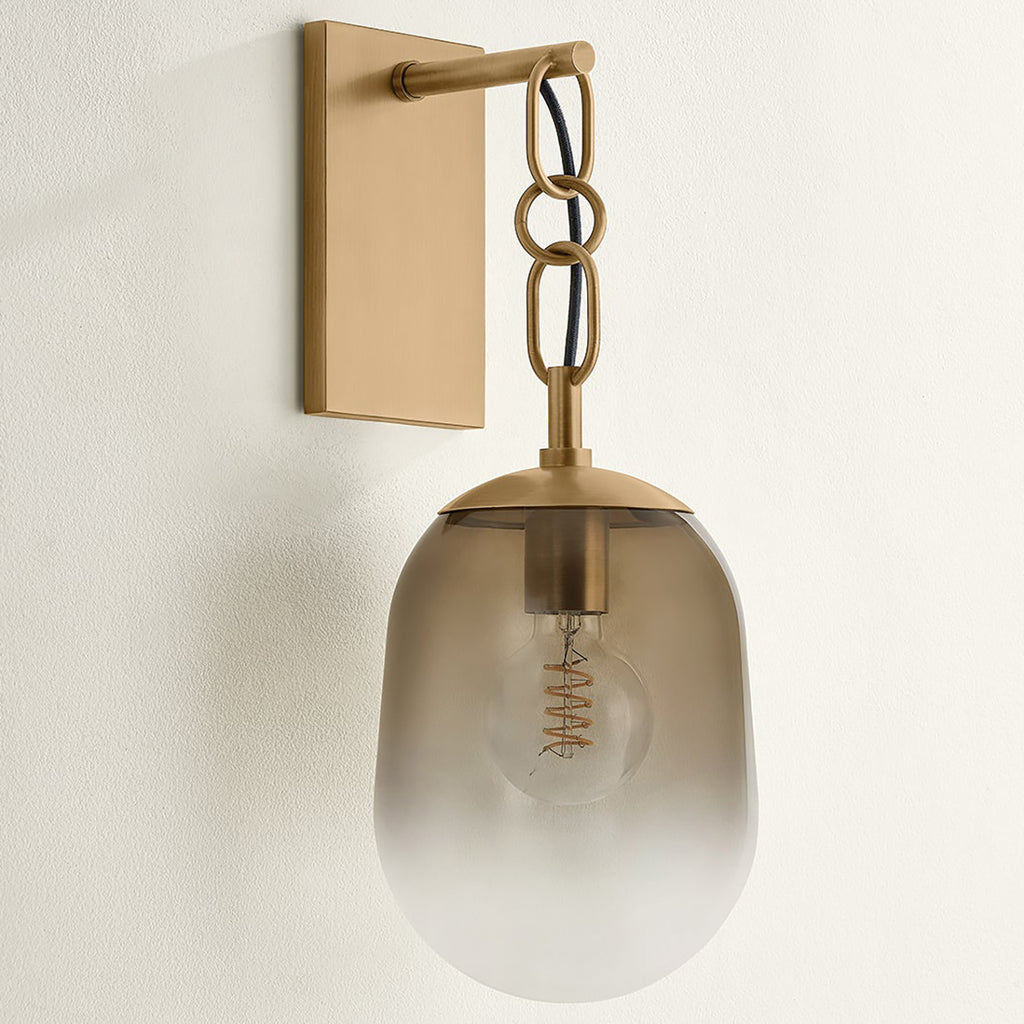 The Troy Lighting Harvey chandelier’s dangling arms and artistic ombre glass are both Calderesque and faintly organic. Softly pill-shaped Dark Bronze glass shades drip from racetrack-shaped links on the sparse, arcing metal framework. The subtle industrial details provide a striking contrast to the otherwise playful silhouette. Available with 1, 5, or 7 lights and a Patina Brass finish, Harvey’s innovative spirit enlivens modern interiors.