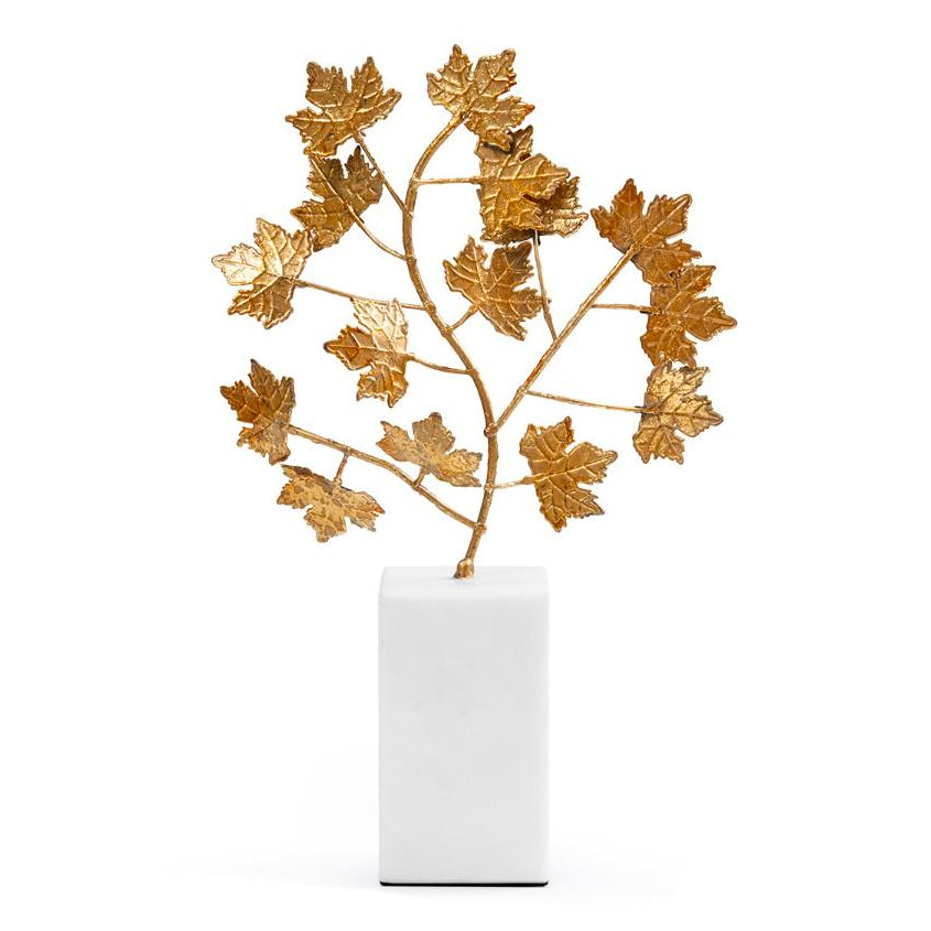 Resembling a delicate tree branch, our Maple Branch Statue makes for a whimsical set of bookends or a singular statue on your shelf. Its leaves are stamped and tooled to exhibit details like delicate veining, and then hand-leafed in gold to create its lustrous golden sheen. The Maple Branch Statue brings the natural elements into your home.