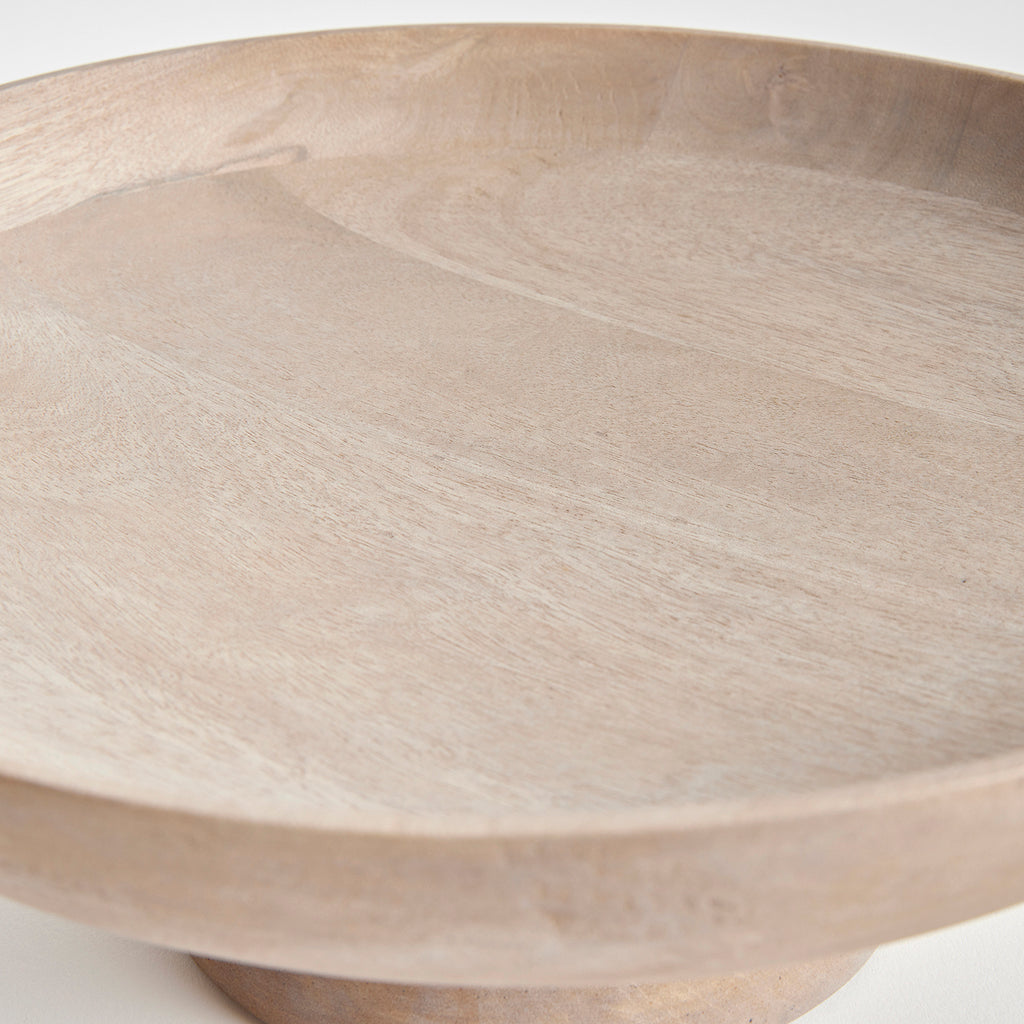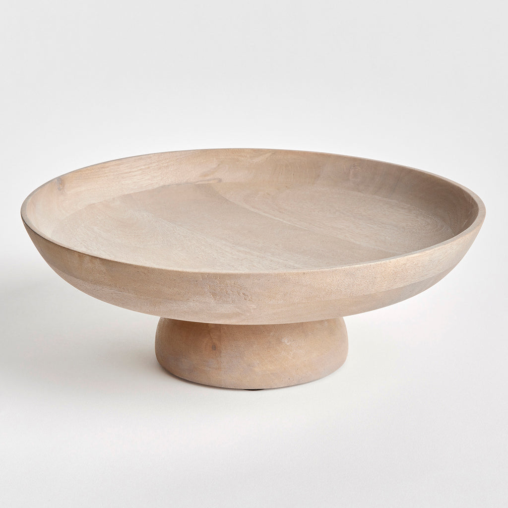Contemporary and uniquely designed, this footed bowl is made of mango wood. Makes a beautiful serving bowl for dry foods, as well as a gorgeous centerpiece all on its own.