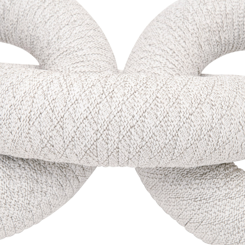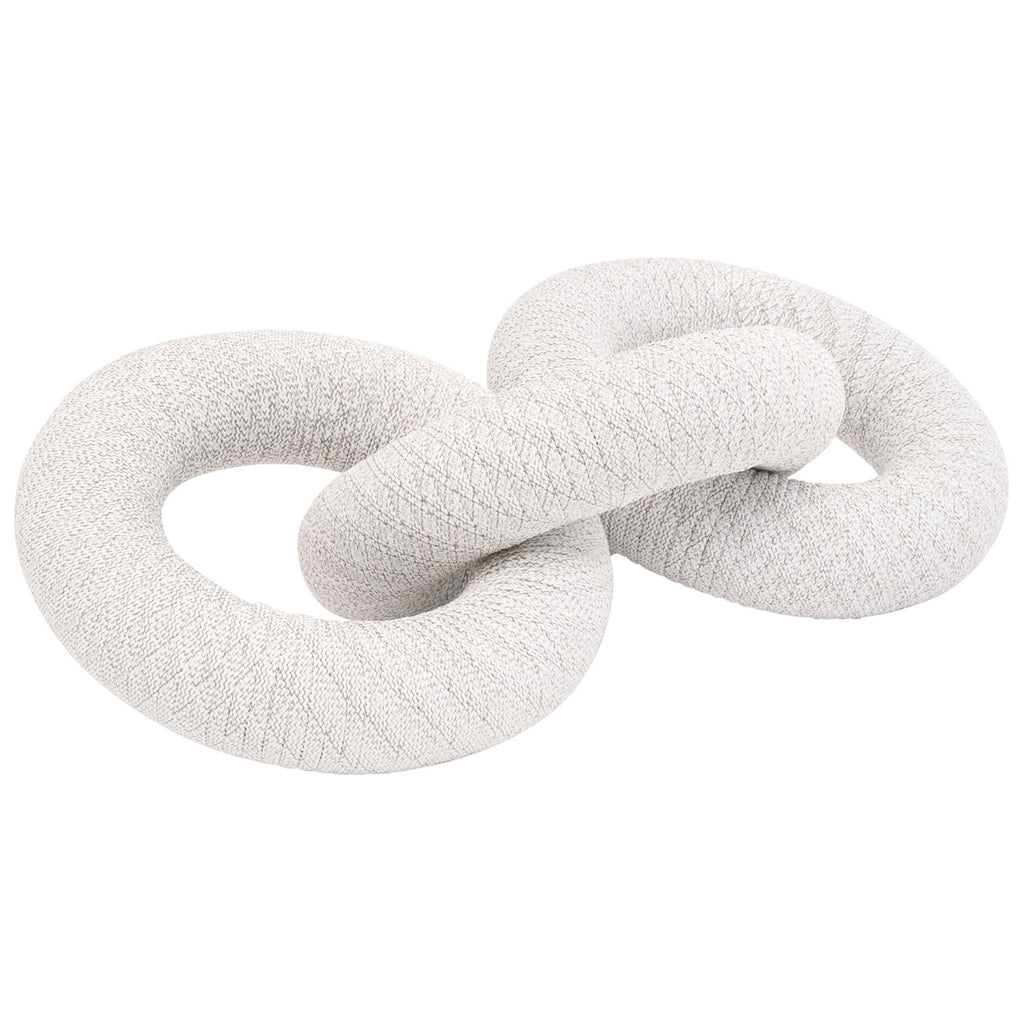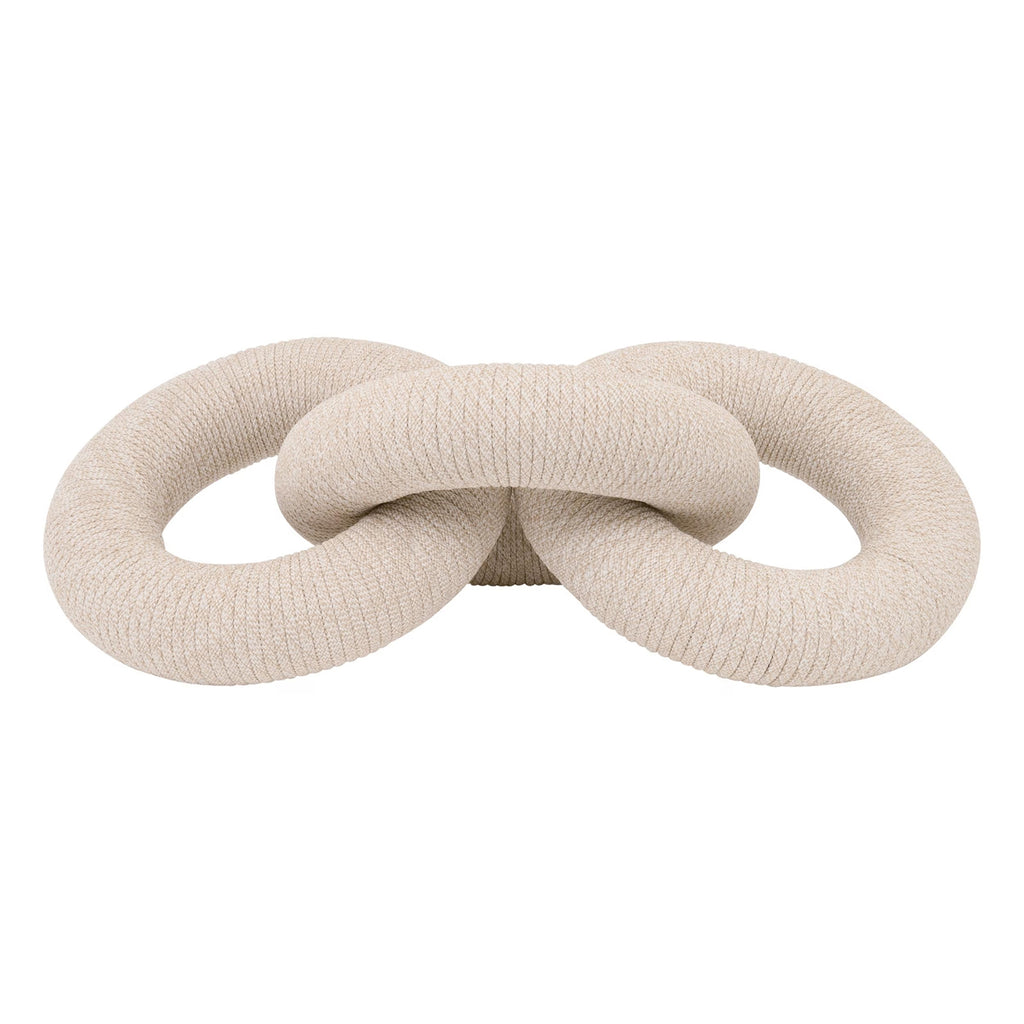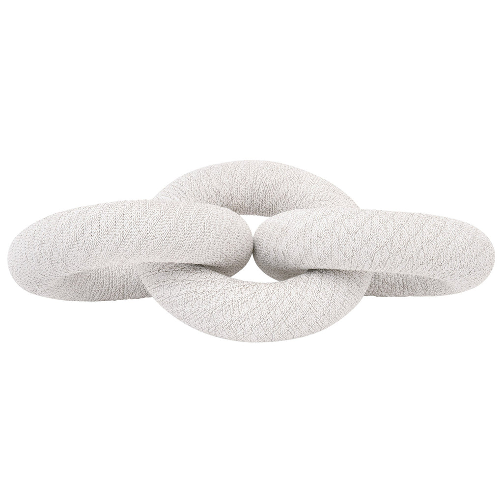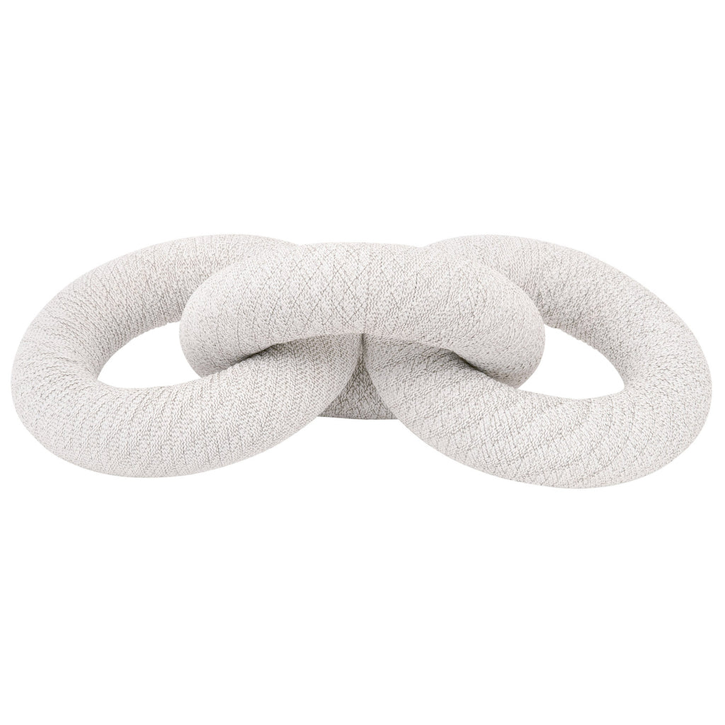 Accessorize your living space with this handcrafted Crew Rope Link by Essentials For Living. The decorative link features a solid mahogany wood core wrapped in luxurious dove flat polyolefin rope. This unique tabletop accessory showcases three circular chain links and measures 16.5in wide, 8in deep, and 8in high. It is the perfect size for decorating various furniture pieces such as dining tables, mantles, coffee or accent tables, bookcases, and cabinets. The meticulous craftsmanship and high-quality materials make this a standout addition to your home decor collection.
