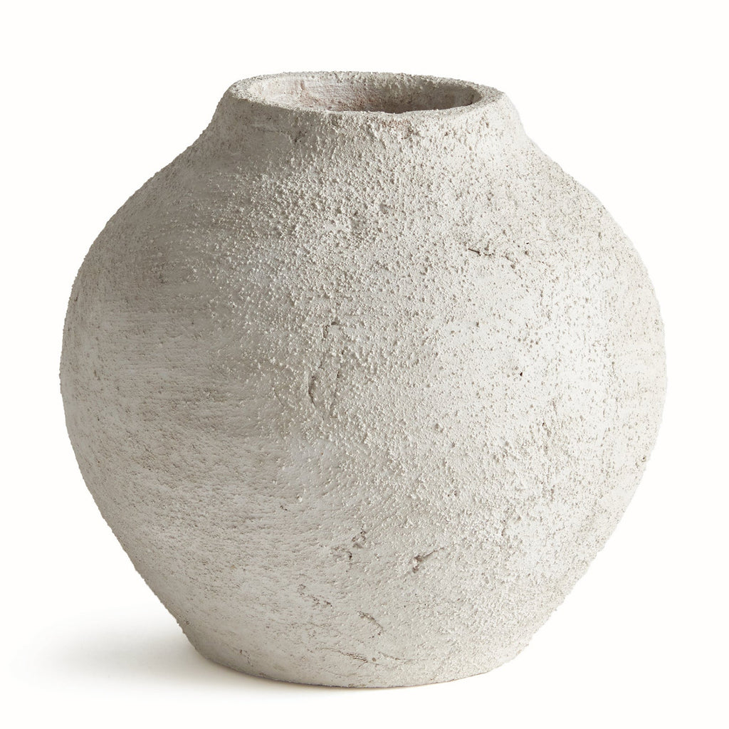 In a textured cold finish, this rotund shaped vase adds a touch of antiquity. Add a few faux stems for color, or display as is for a simpler look.