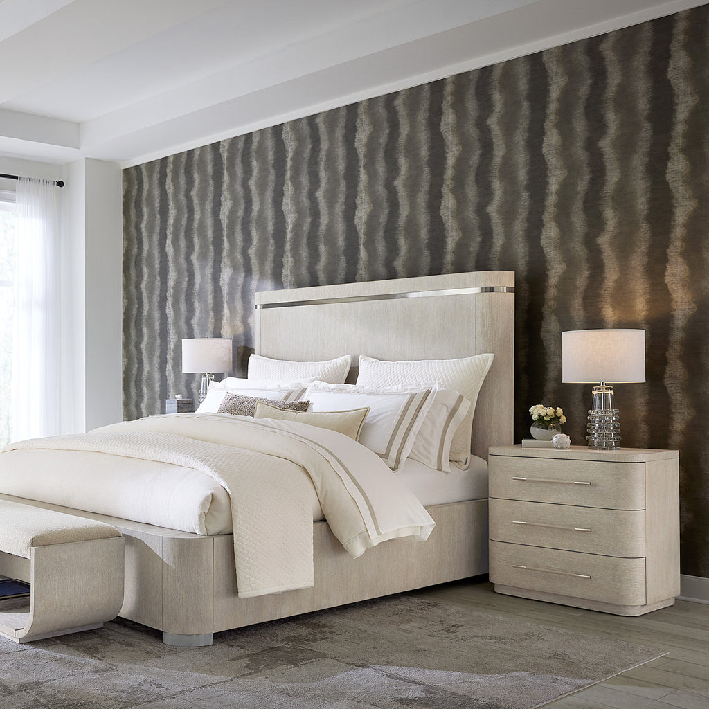 Softly sophisticated with a clean modern profile and luxe mixture of materials, the Modern Mood Nightstand is a stunning statement piece. The case has rounded corners and a plinth base and offers three self-closing drawers