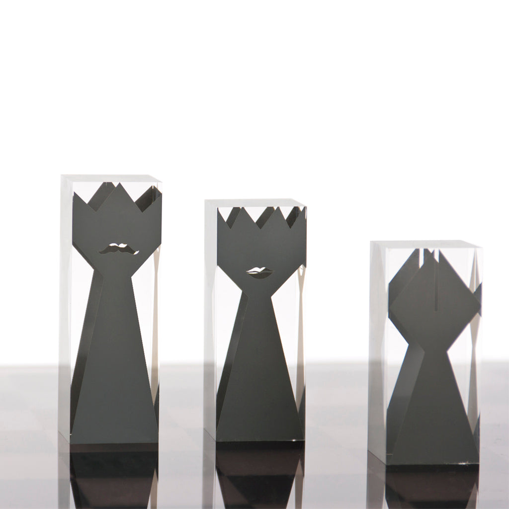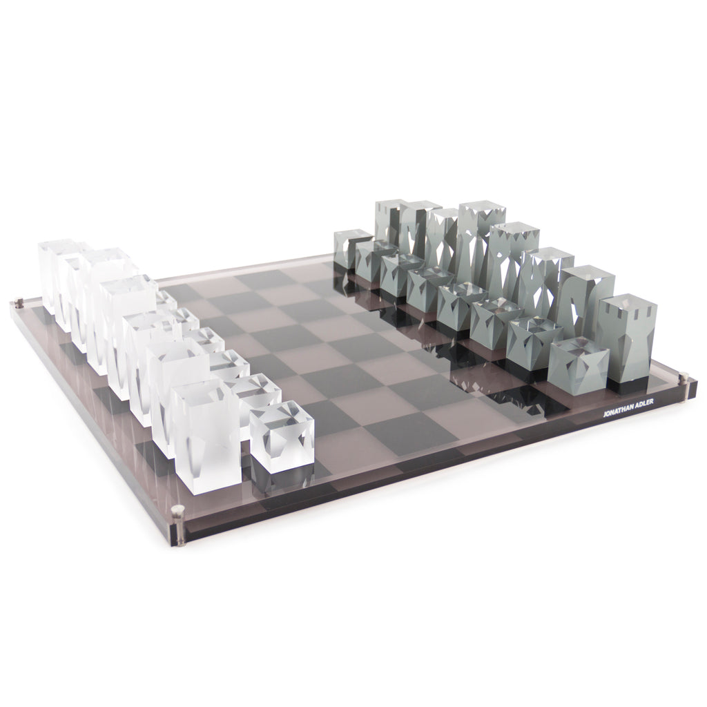 Conjure the glamour of Halston in the 70s with our oversized, chunky acrylic chess set. Perfect for permanent display on a cocktail table. And remember: every pawn is a potential queen.