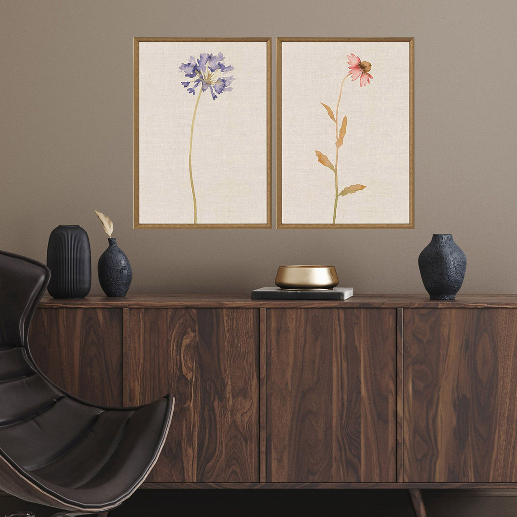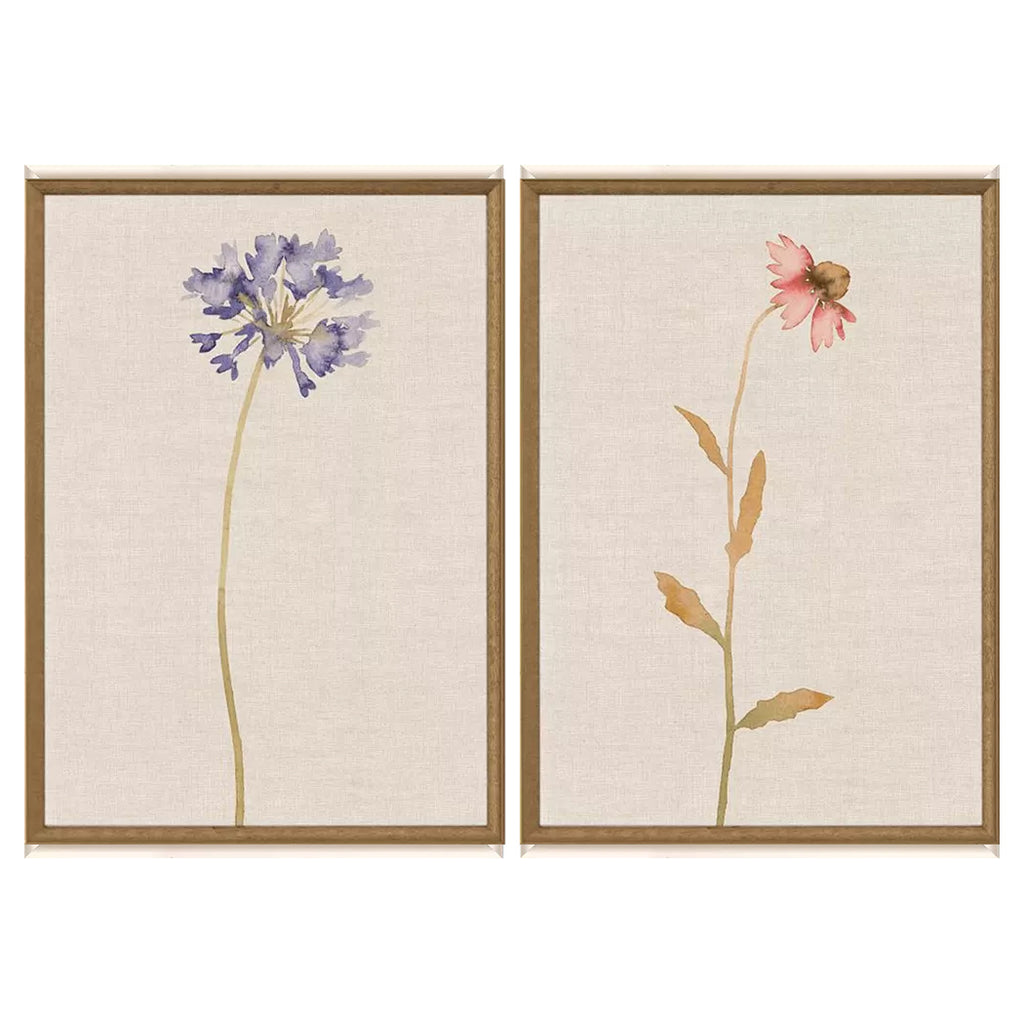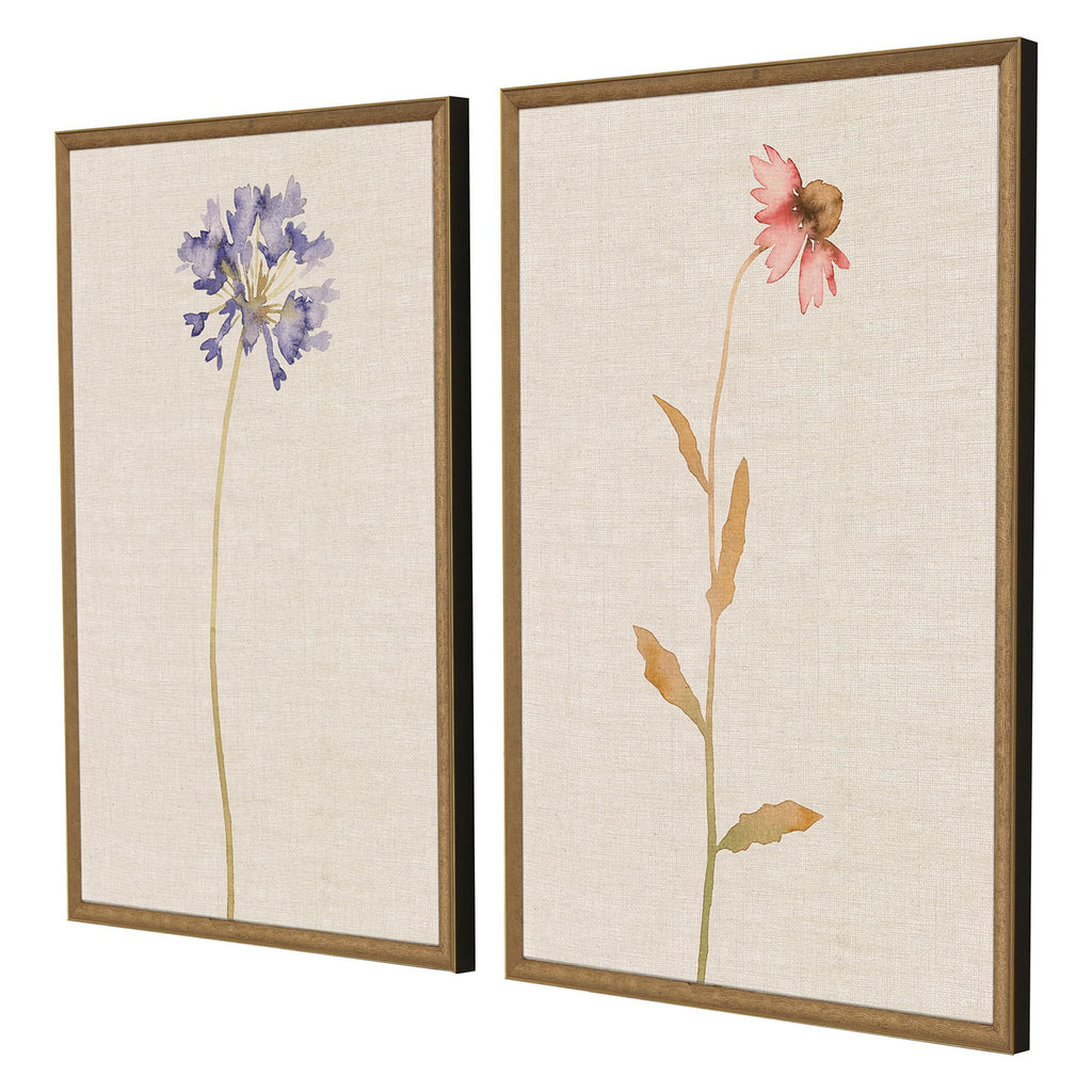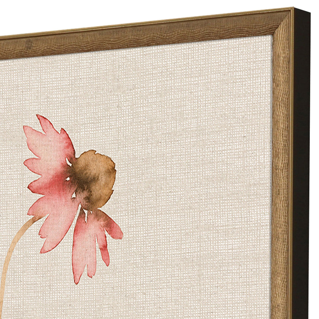 Delicate flower stems are framed in an antique gold wood with embossed weave pattern.