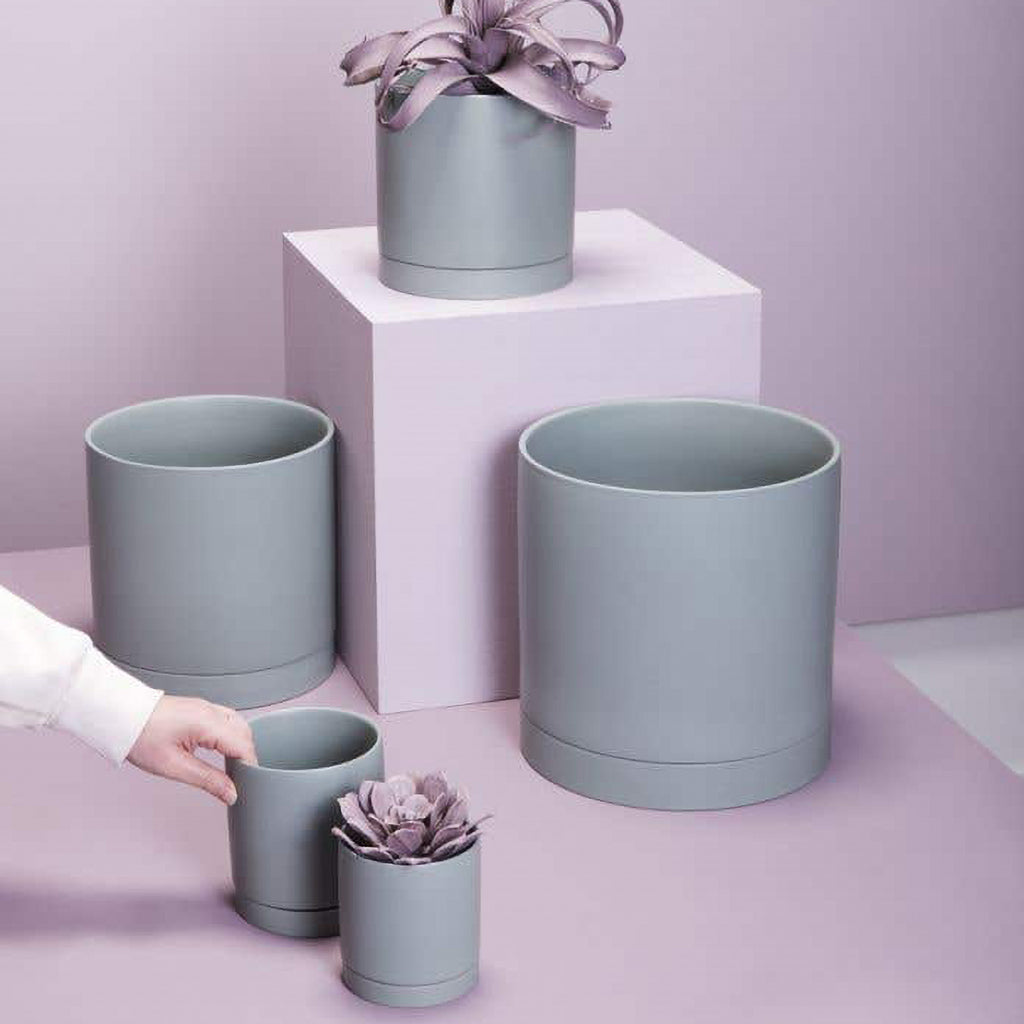 Everyone loves the ceramic Romey Pot for its modern look, classic shape, drainage saucer & smooth matte finish. Choose from multiple sizes & colors for your growing plant. Vibrant bold hues layer beautifully together & adapt to any style of decor.