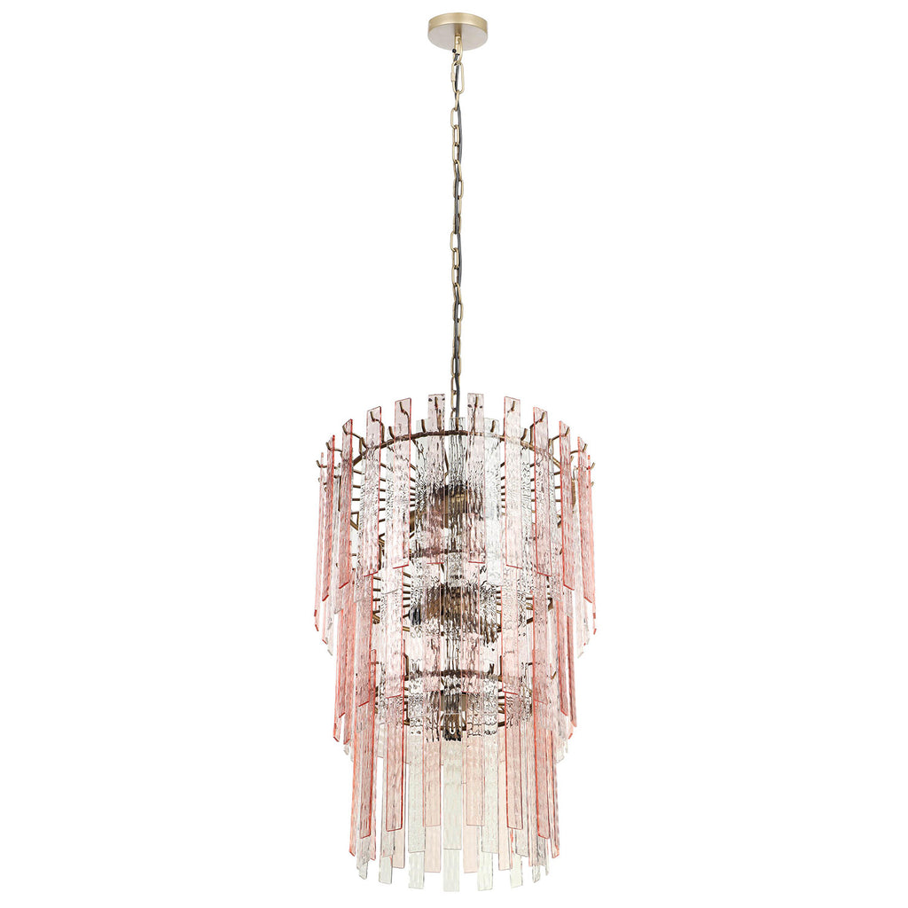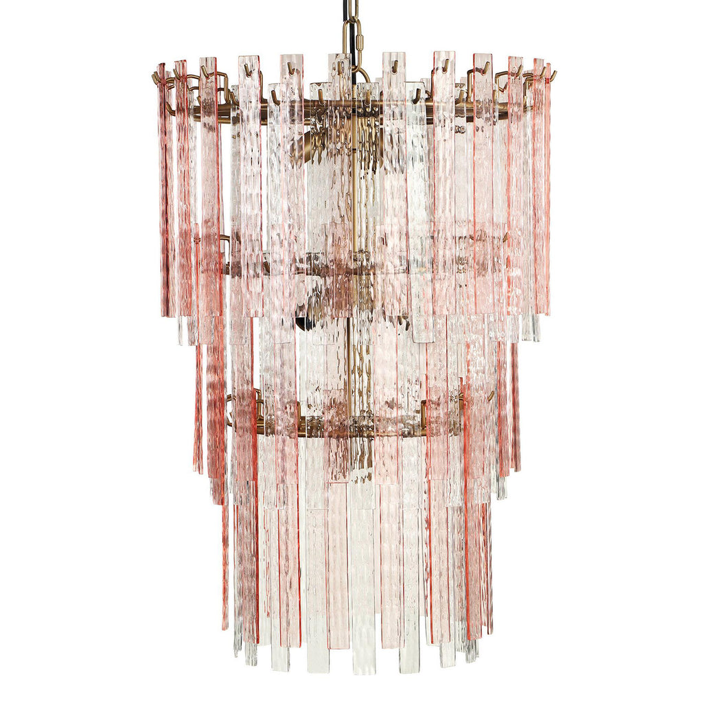 The Hampshire Pink Acrylic 3-Tier Chandelier is a stunning and sophisticated lighting fixture, reminiscent of classic Murano glass chandeliers. The chandelier's warm and soft lighting creates a cozy and inviting atmosphere, while the glass sparkles and reflects light around the room. Add the Hampshire to your home for that element of va-va-voom!