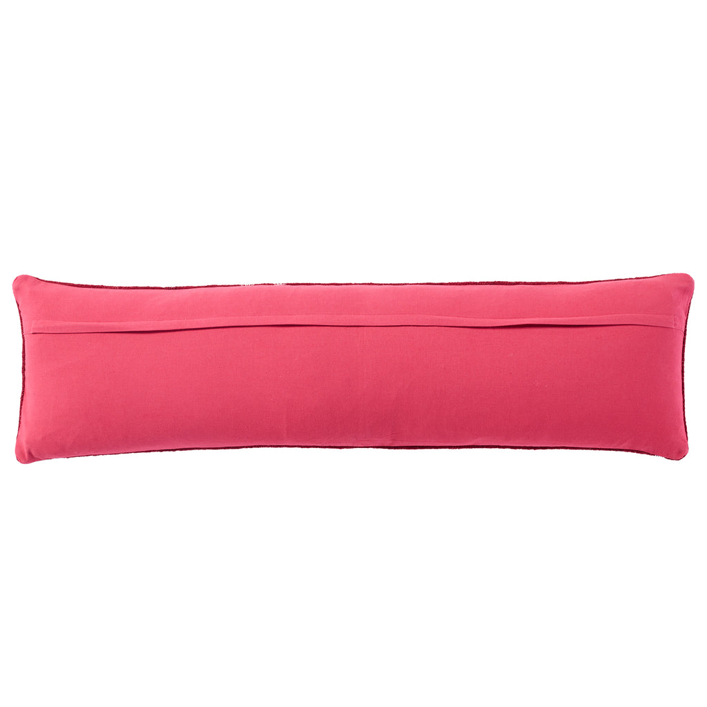 Inspired by Moroccan Sabra styles, the Jaipur Puebla collection boasts vibrant color palettes and intricate tribal embroidery. The Katara lumbar pillow features a vibrant red colorway with gray and blush details accenting the textural, India-sourced wool weave.