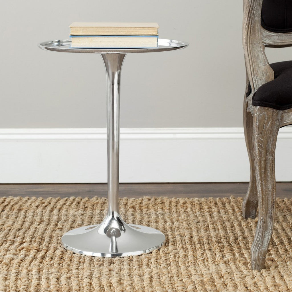 Choose the Platina Sleek table as a sophisticated accent for contemporary interiors. With graceful lines, shimmering tones, and an artful Deco vibe, the round Platina table in polished aluminum will hold your flowers or cocktail with equal elegance.