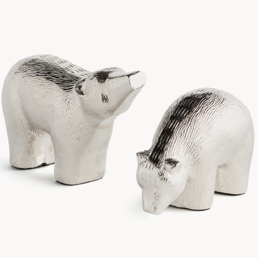 The little one explores, as the momma looks on, these modern polar bear sculptures really bring the charm. Sand-casted by hand, they make adorable book ends, paper weights or simply tuck into a bookshelf for added charm.