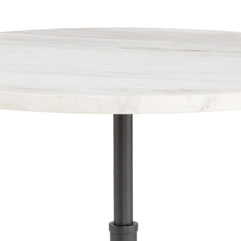 Elevate your decor with the Myles Accent Table. Featuring a substantial marble tabletop, this table's sturdy metal base highlights its sleek, sculptural design, offering timeless, industrial charm. The robust construction pairs beautifully with the marble’s natural veining, making the Myles Accent Table Large a perfect addition to any living room, bedroom, or dining space seeking classic sophistication and enduring style.