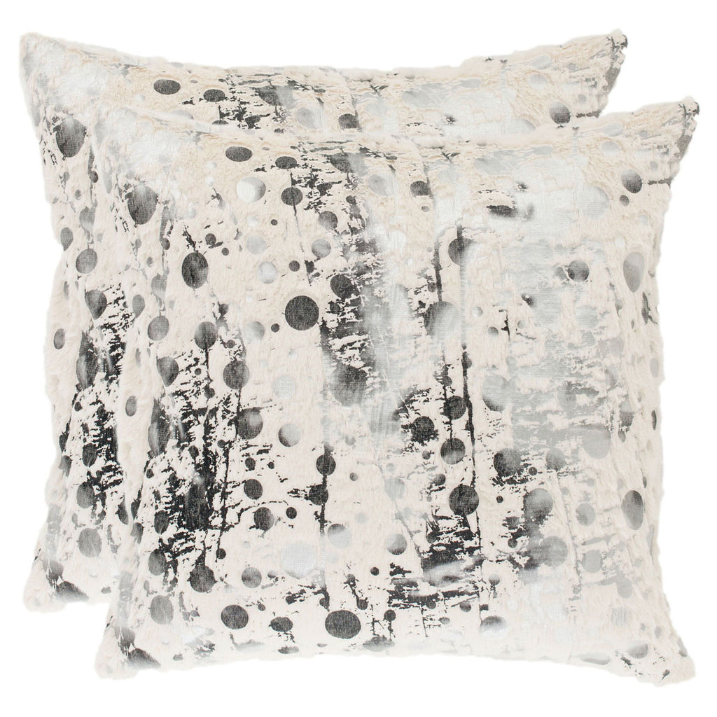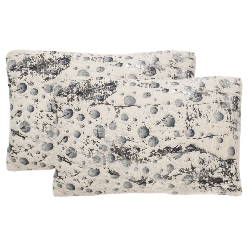 Layered with texture, this dramatic accent pillow is covered in a luxurious low pile faux fur polyester fabric adorned with frosty platinum and gray circles that morph into an abstract motif.  Use this design for a touch of glamour on sofa, bed or chaise. Sold as set of two.
