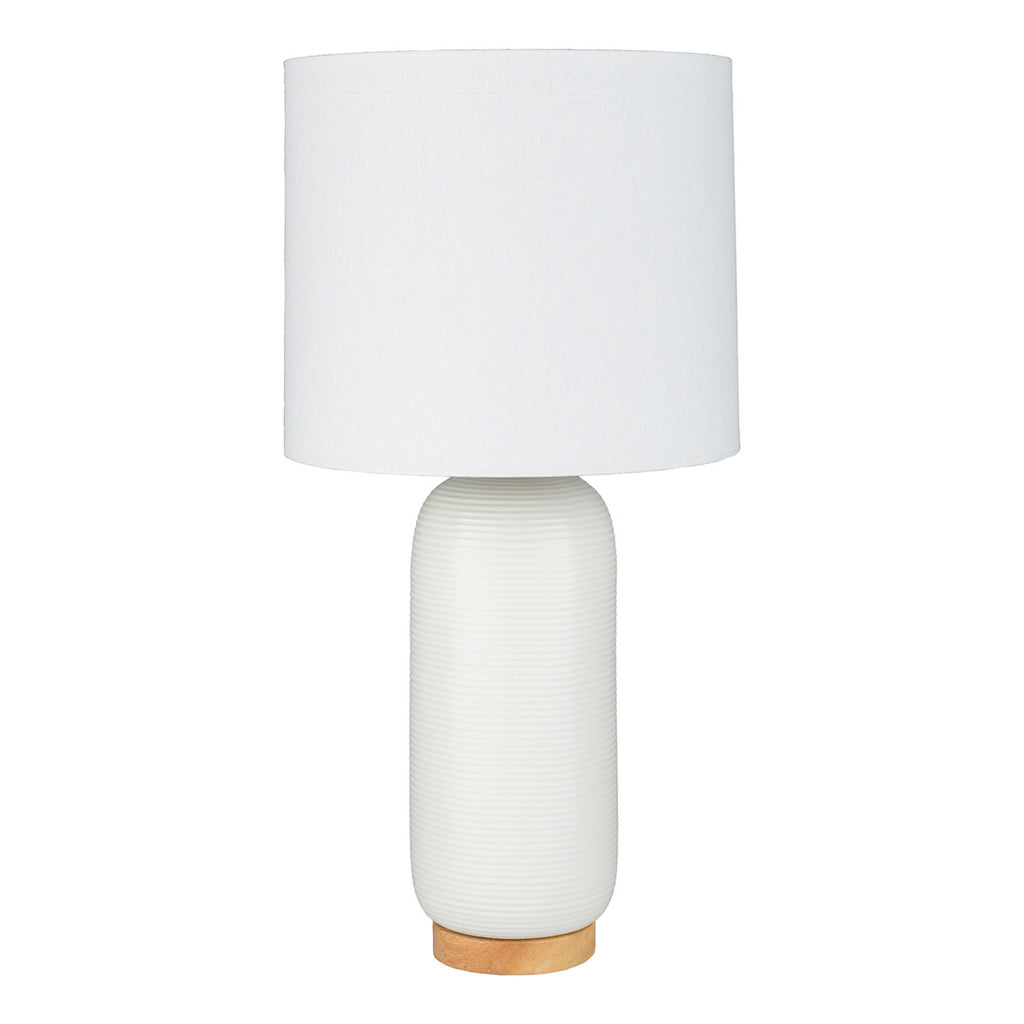 Spice up your living areas with the Lola lamp. Comprised of linen, polyester, ceramic, wood, and metal. Easy to clean, this product only needs a quick wipe with a clean dry cloth.
