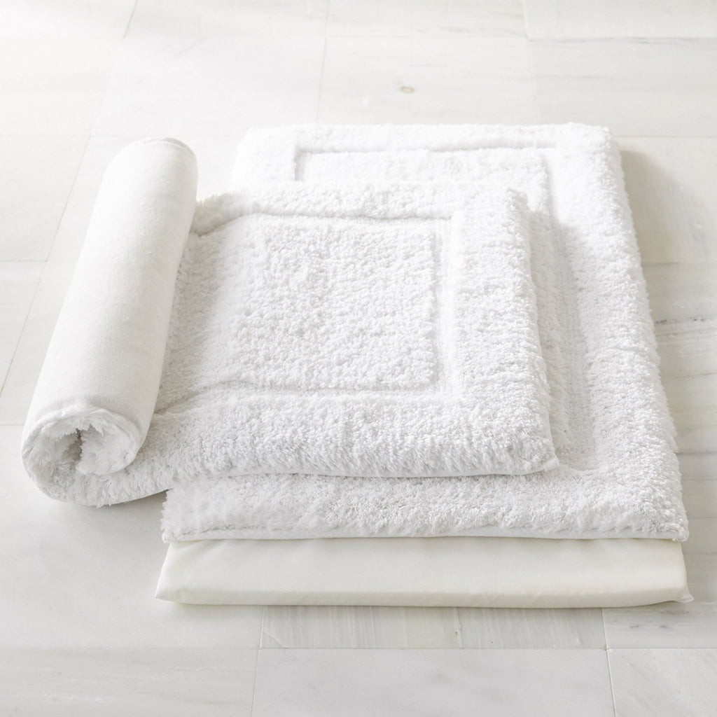 The Peacock Alley Tiffany Cloud bath rug features a removable, high density foam insert that repels water and is naturally antimicrobial. This bath rug boasts a durable loop construction, which makes it light, saves energy when washing and drying, and maintains its loft and softness. It may be the most comfortable bath rug ever.