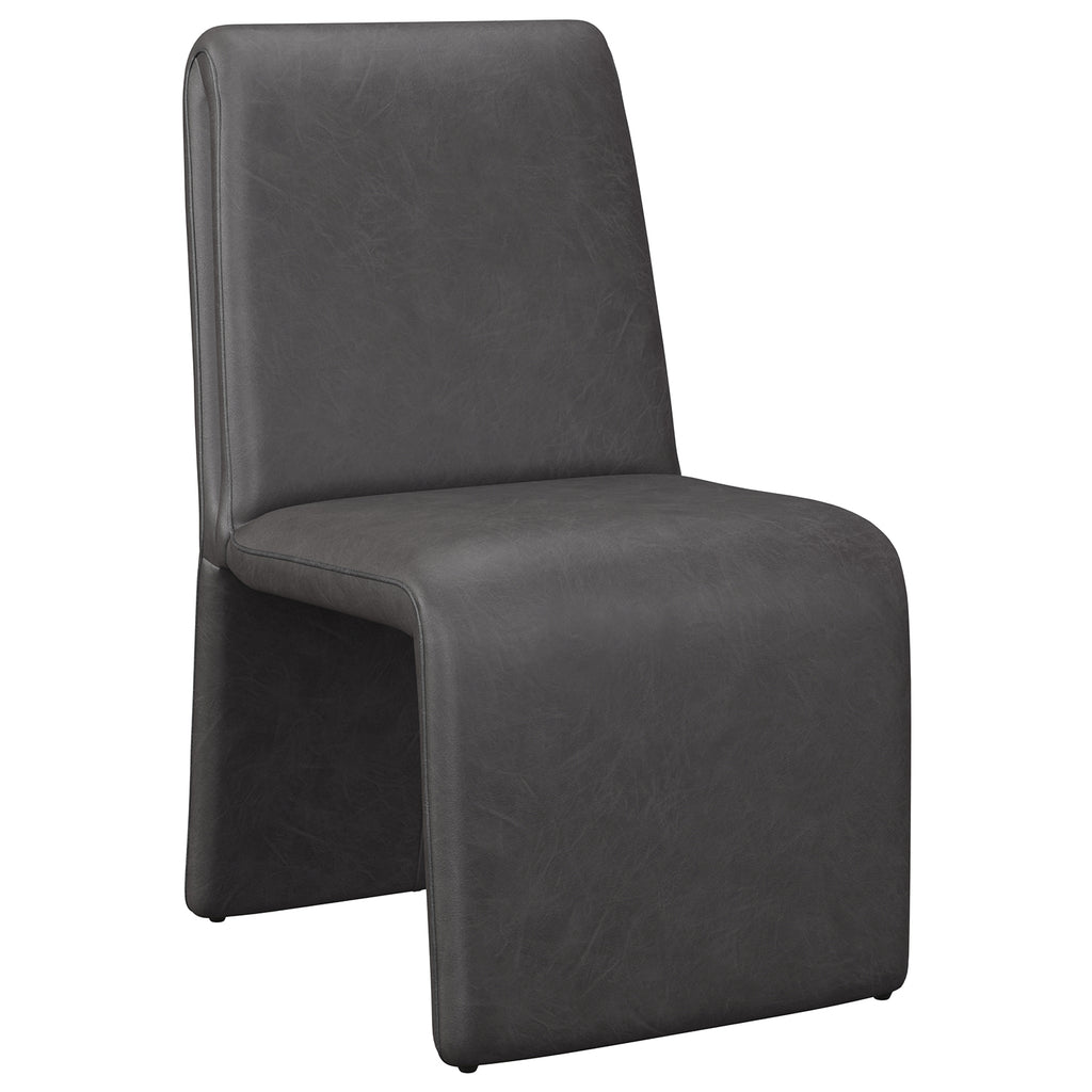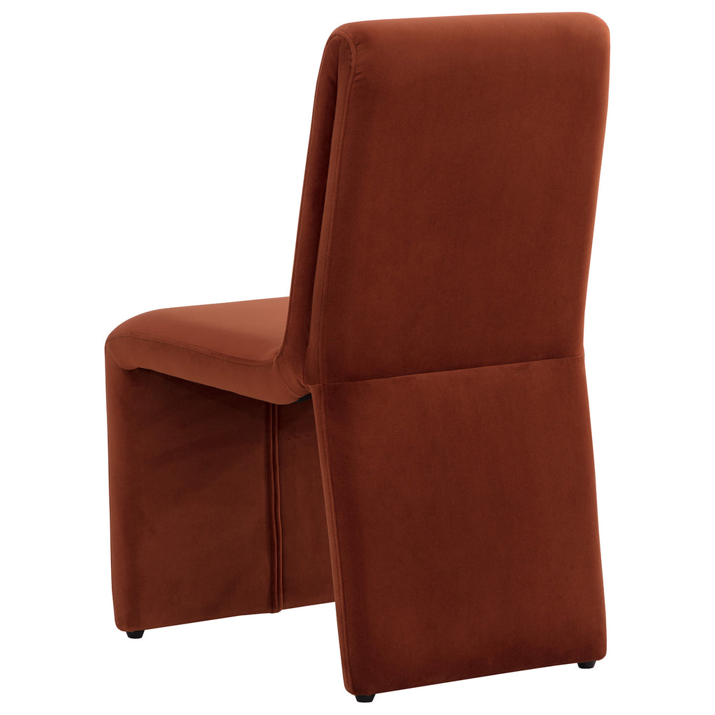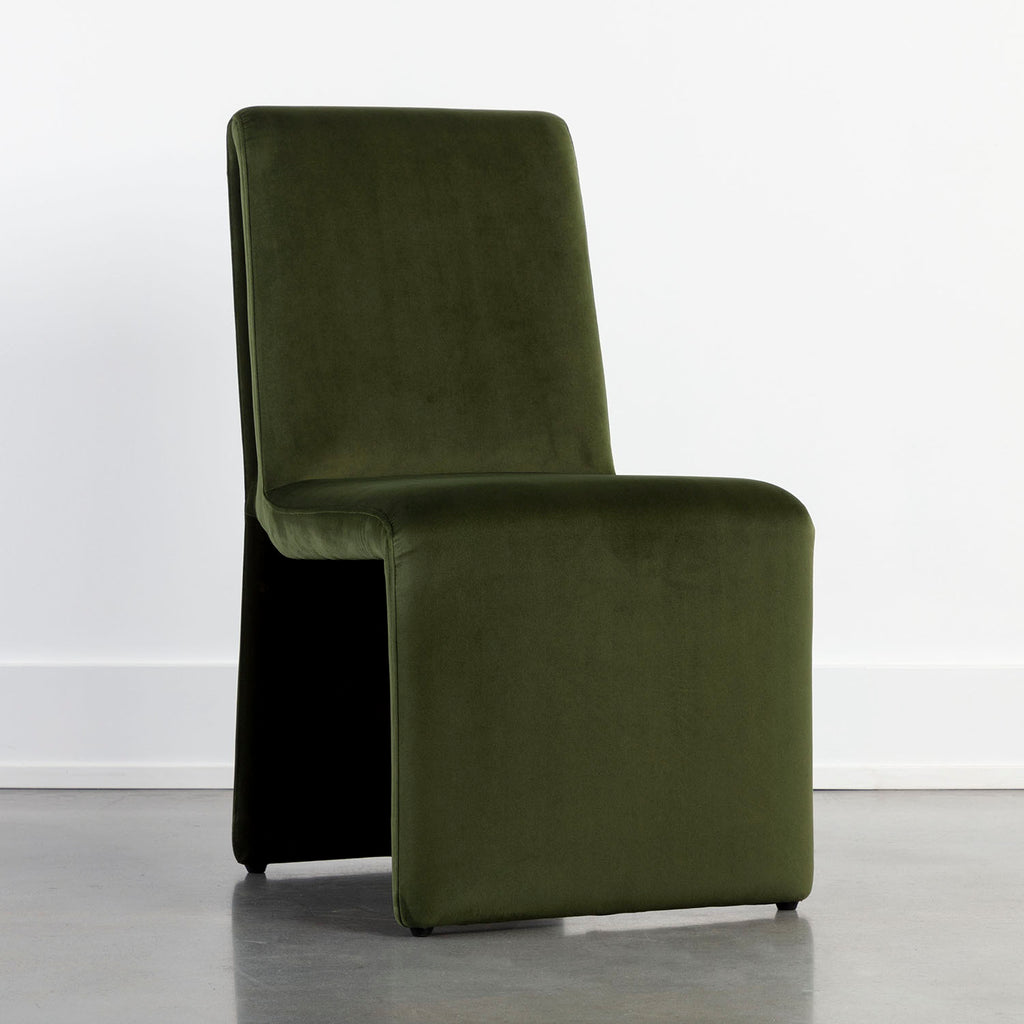 Create an alluring dining space with this modern dining chair that features an intriguing silhouette.