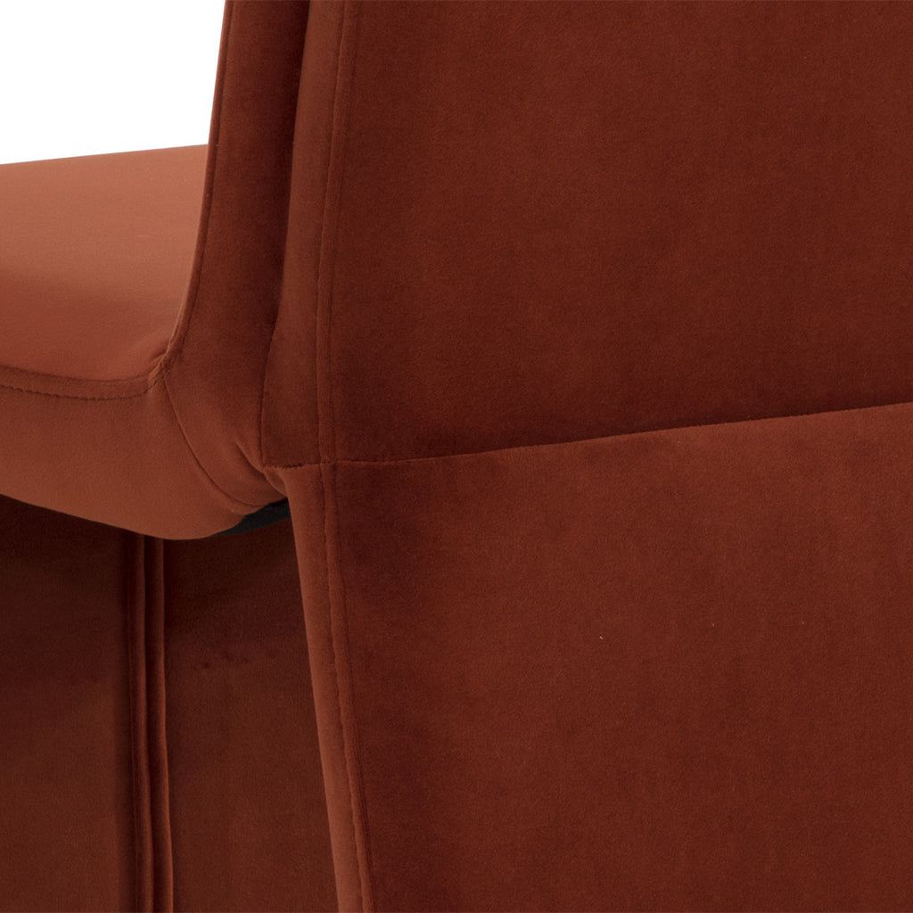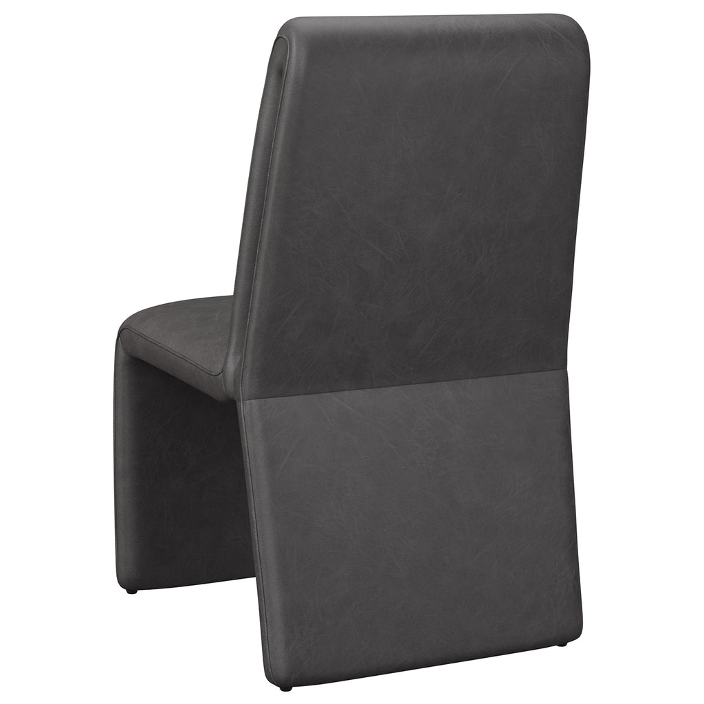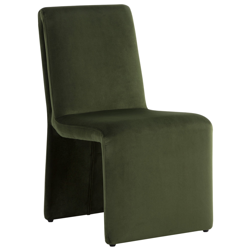 Create an alluring dining space with this modern dining chair that features an intriguing silhouette.