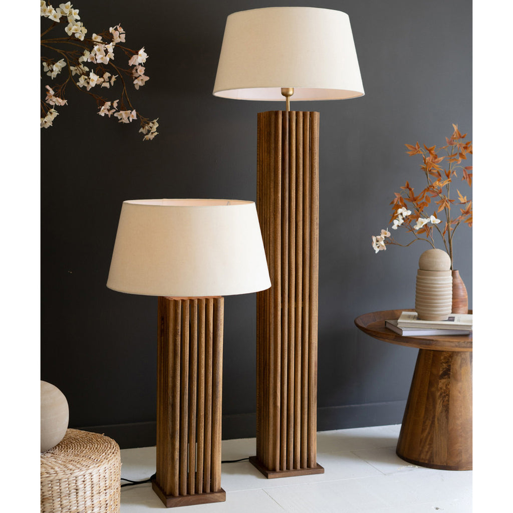 Add a natural touch with this spindle table lamp with a fabric shade. It matches the wooden spindle floor lamp to make a set. Use them together or on opposite sides of the room for a matching natural touch.