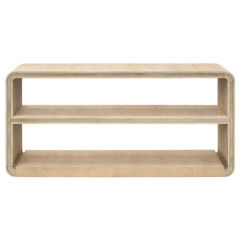 The Damone Console Table showcases a sleek, modern design crafted from white oak veneers in a casual blonde oak finish. Enhanced by elegant antique mirrored detailing, it adds a touch of sophistication to your entryway or living area. Featuring one convenient shelf, it provides ample space for decor items or essentials, combining functionality with style. This versatile piece seamlessly complements various decor styles, making it an ideal addition to any space.