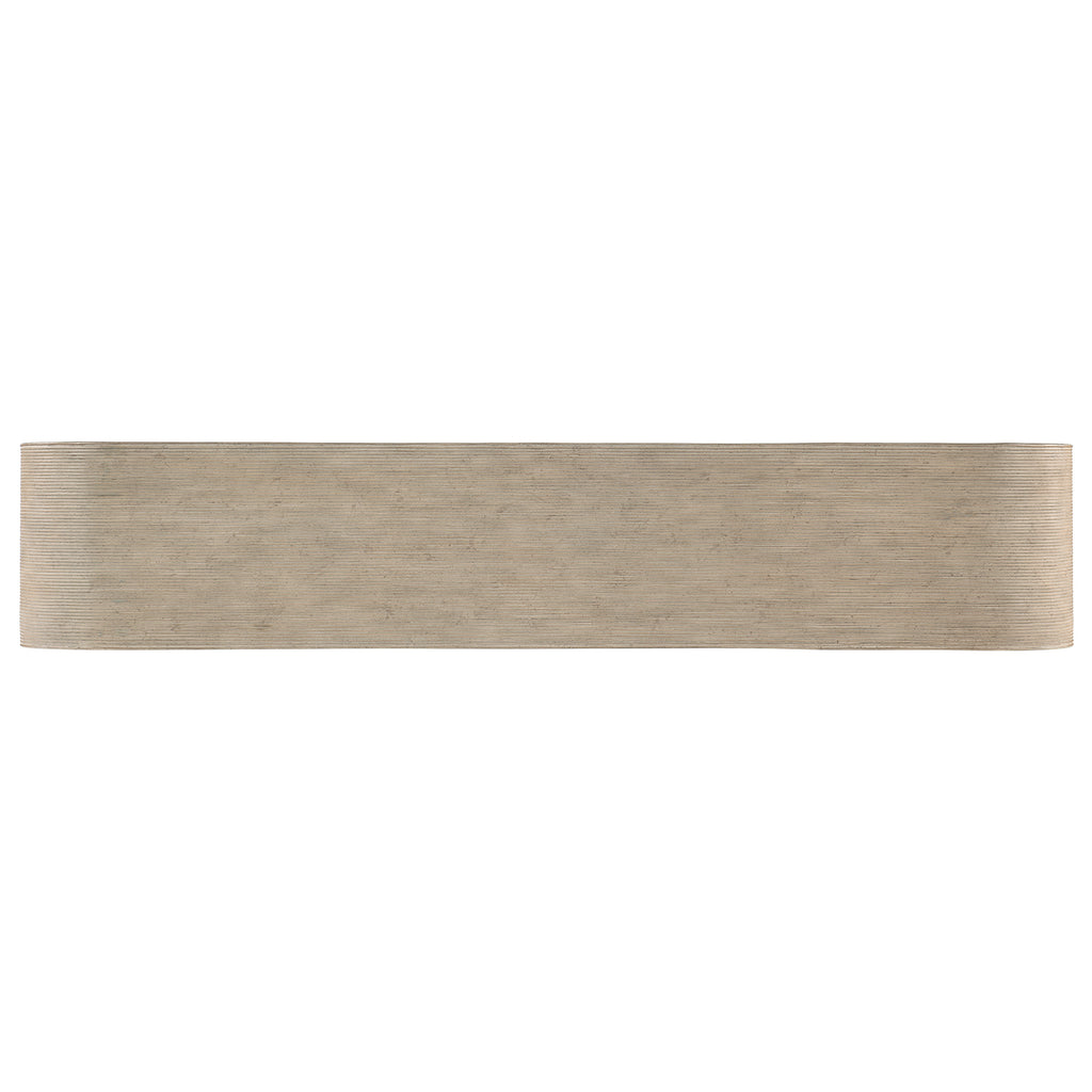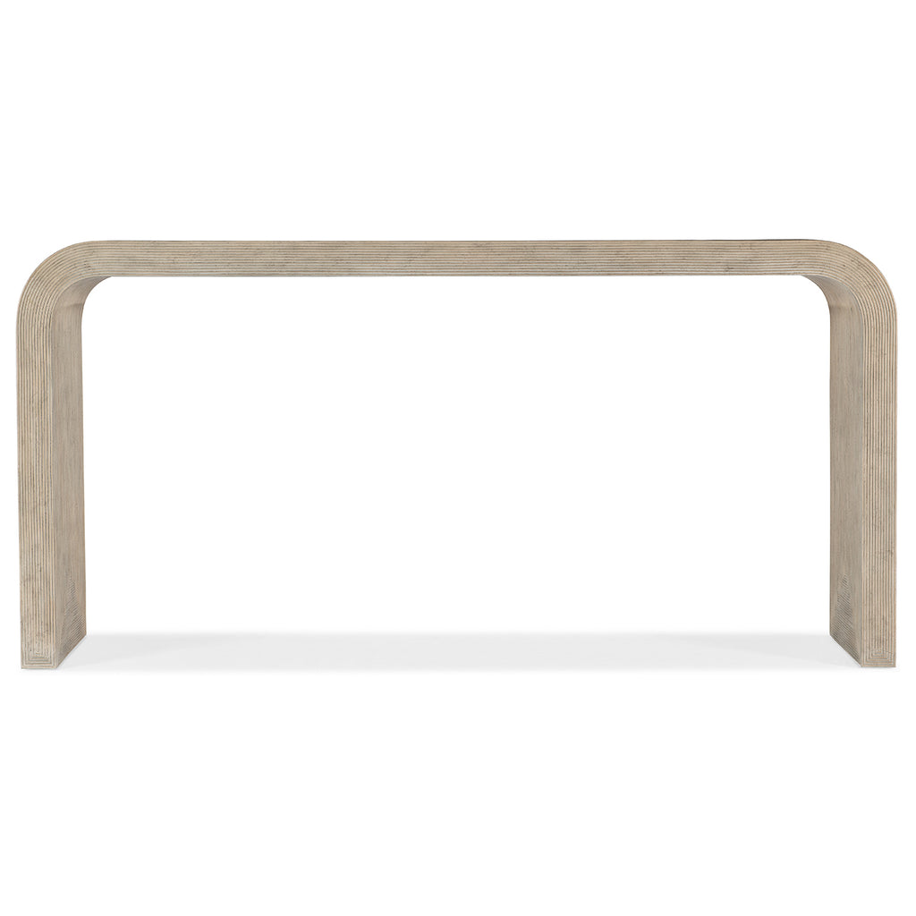 Striking in a sweeping silhouette, the Delta Console Table brings a casual modern and organic look to your space. In a rectangle shape with a ridged design and triangle motif at the base, the console is crafted of Resin, Wood in a light natural finish. At only 13 ½ inches deep, this console fits easily into smaller spaces.