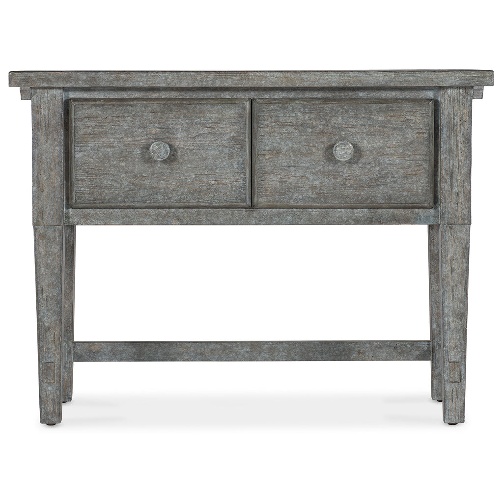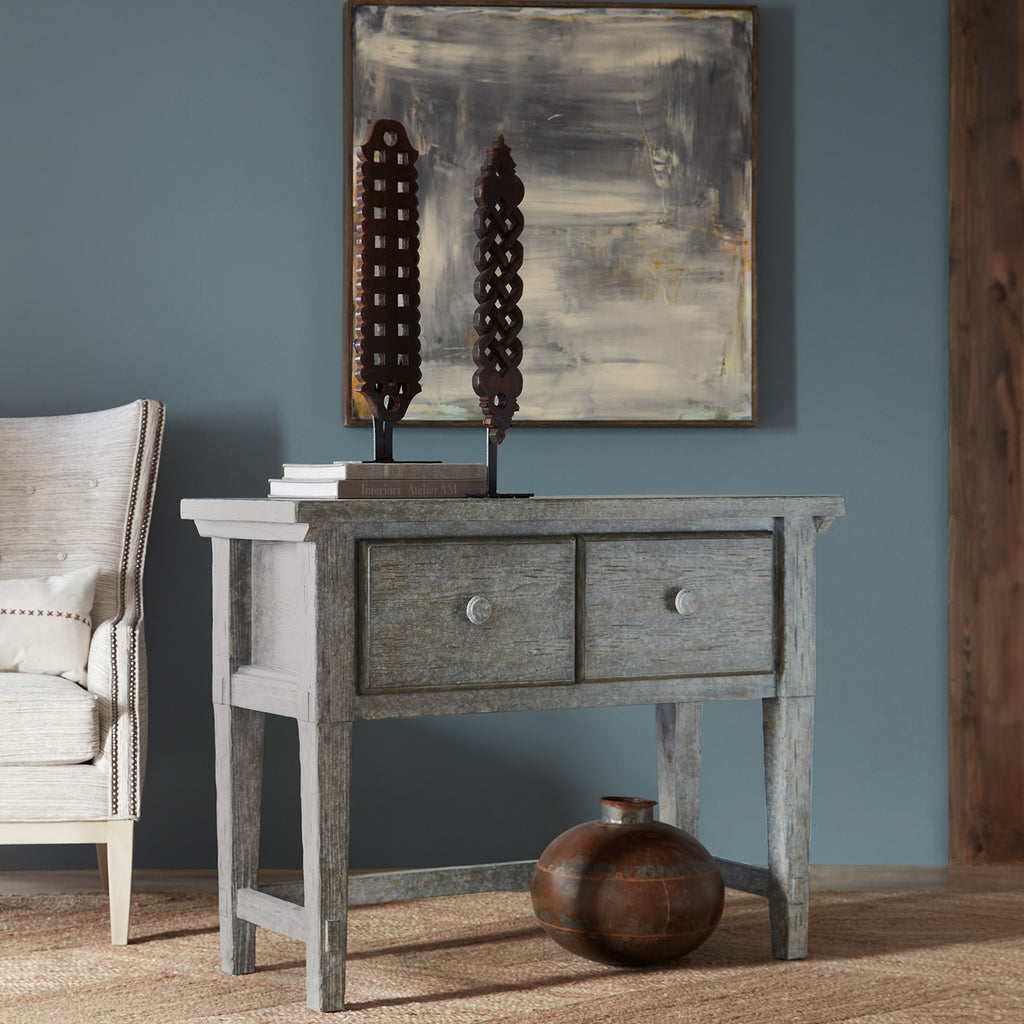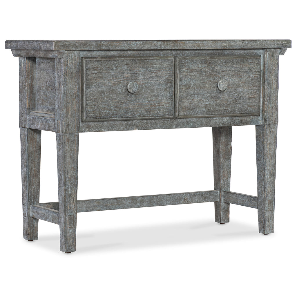 With a Belgian design aesthetic, the Stonewashed Console expresses the elegance of simplicity and the essence of inviting casual style. Crafted of Pine Veneers with a distressed blue finish, tapered legs and an interlocking design on the stretcher and frame, it has two drawers with soft-close guides.