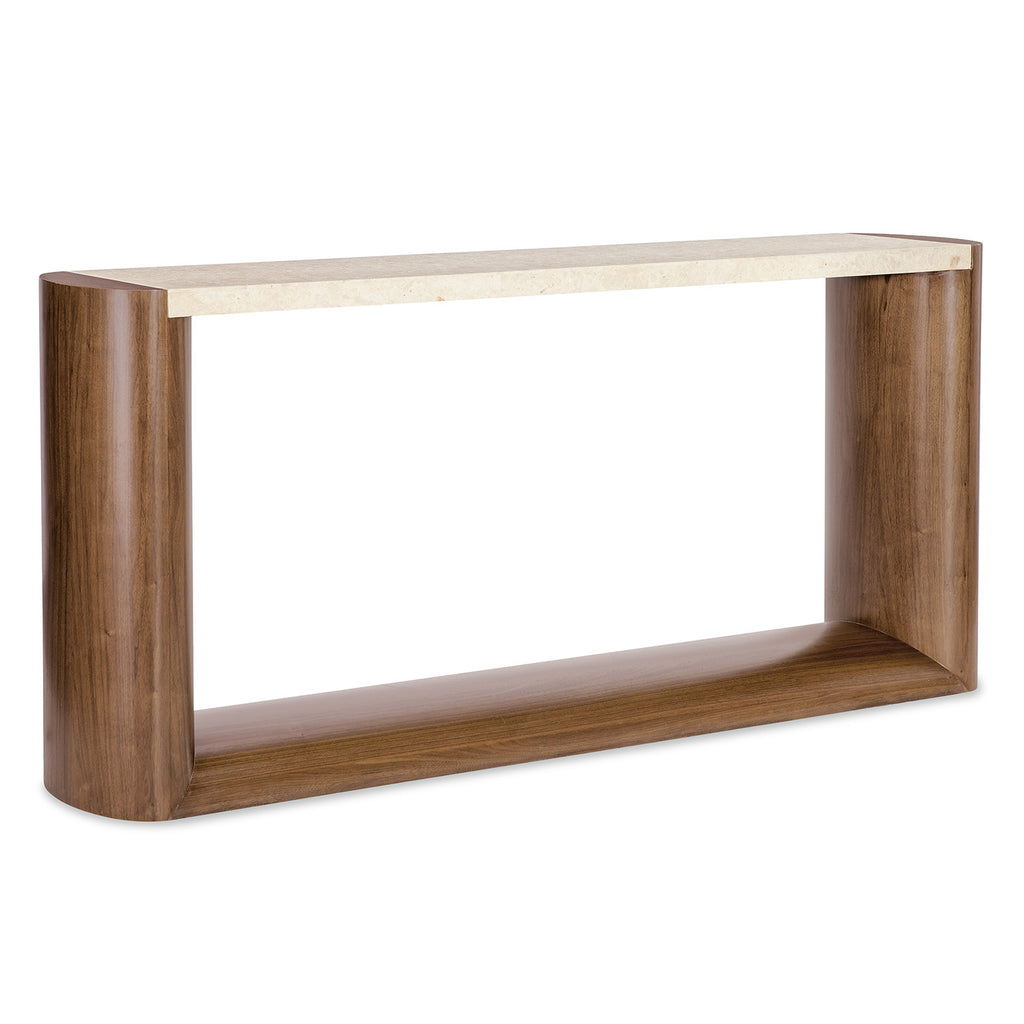 The Eleana Console Table is perfect for creating an elegant focal point in entryways or living rooms. Featuring a Light Caramel walnut veneer frame, a honed marble top in white and beige tones, and a slender silhouette, it blends timeless craftsmanship with contemporary style. This table offers a chic surface for décor or practical use. Marrying sculptural refinement with an effortless sense of luxury, the Eleana collection is a masterclass in contemporary elegance. The series, imbued with an effortless sense of sophistication, where sculptural silhouettes meet richly textured materials to create pieces that feel at once timeless and of the moment. Versatile in both scale and sensibility, Eleana's thoughtful proportions and nuanced finishes bring a sense of depth and harmony, lending itself seamlessly to a range of interiors, from intimate city dwellings to expansive retreats. Infused with a relaxed yet polished sensibility, Eleana embodies the essence of modern living; stylish, inviting, and intuitively crafted for the way we live today.