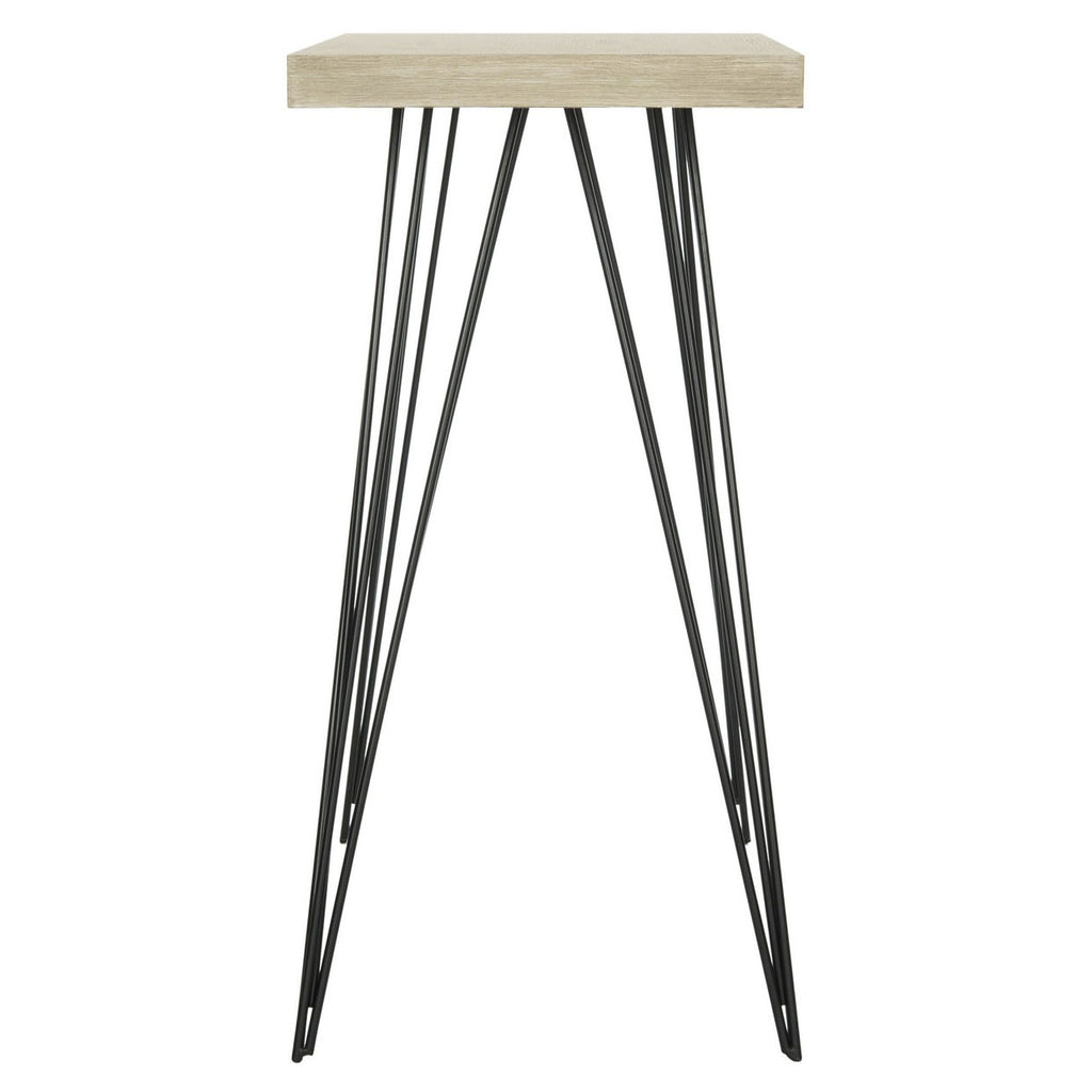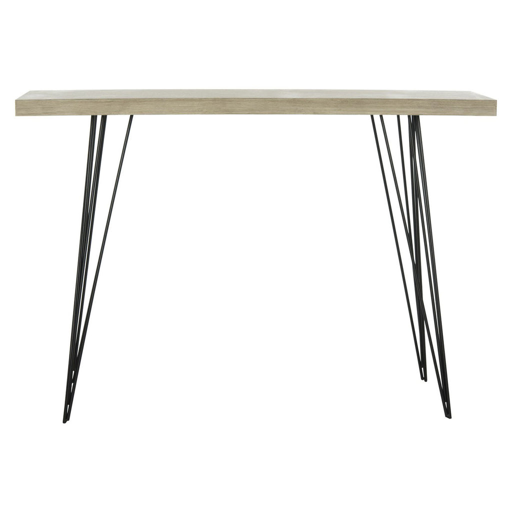 Designed for the contemporary interior, this modern console complements minimalist interiors with the subtle geometry of its slender iron legs, and adds warmth with its neutral grey palette. An ideal landing for a tray of cocktails or for a chic entry.
