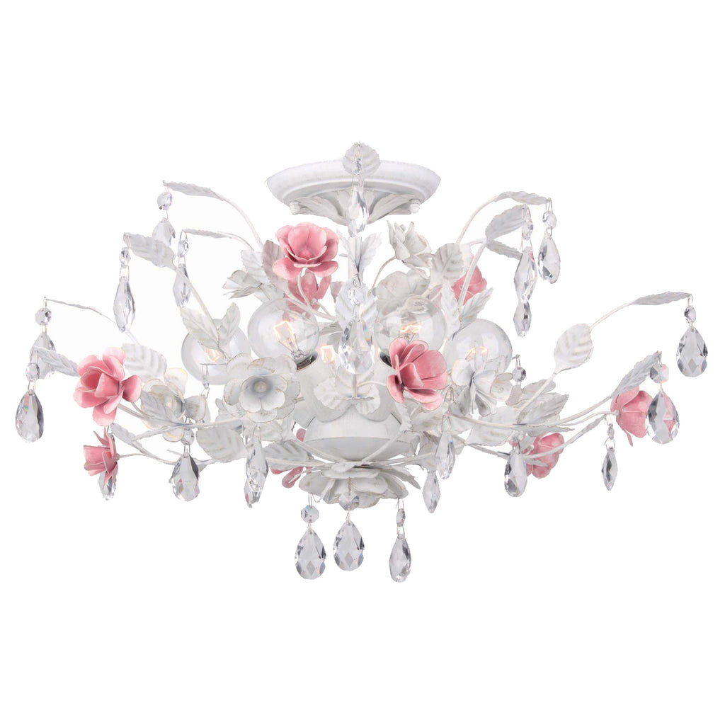 Crystorama is known for its standout lighting, which is exceptional in quality and design. From traditional all-crystal designs to transitional lighting collections, Crystorama offers styles that will match any décor and are always in fashion. The Lola features a feminine, yet casual fixture. Inspired by the Paris Market, Le Puces de Paris Saint-Oven, which features antiques and vintage treasures, Lola's softly curved antique white frame, highlighted with pink colored flowers, is adorned with sparkling faceted crystal jewels. The scale and design of this light makes it the perfect lighting for a little girl's room, but would work great with any space that needs a bit of a chic elegant accent.