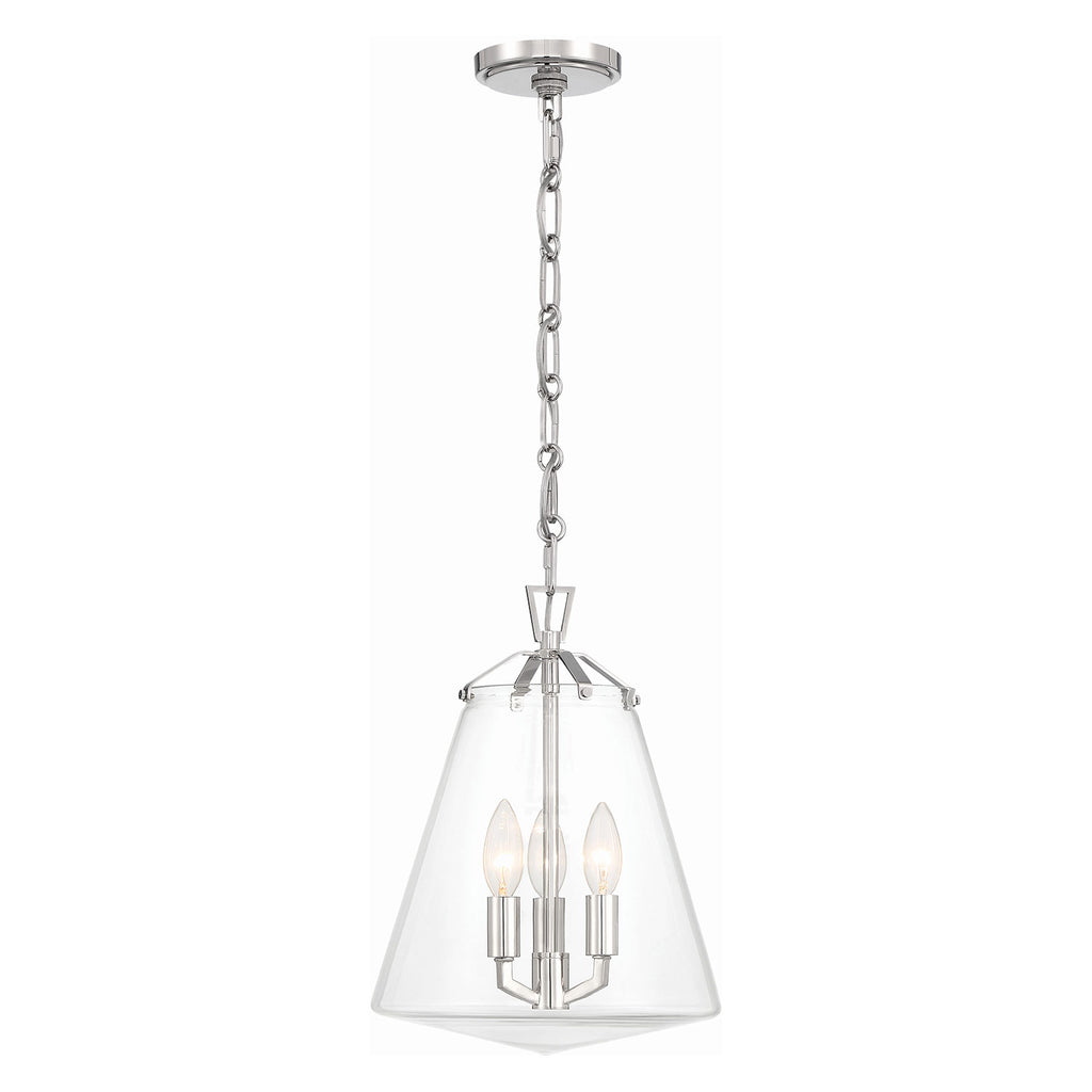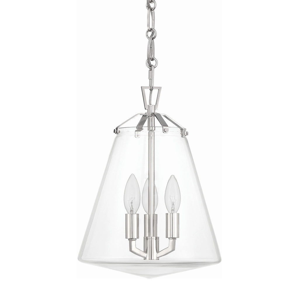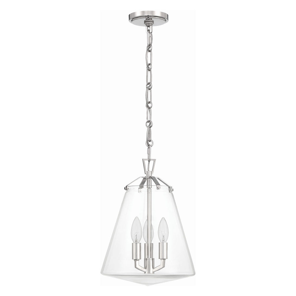 Crystorama is known for its standout lighting, which is exceptional in quality and design. From traditional all-crystal designs to transitional lighting collections, Crystorama offers styles that will match any décor and are always in fashion. A stylish beauty. The Voss Collection is a sleek, enduring design with subtle angular details, offered in various finishes and sizes for your unique space. It’s clear glass cone-shaped pendant is closed on the bottom and fastened with metal on its open top. The patterned chain detail adds a touch of character to its streamlined design. The Voss Collection is not confined to a single style; it is a versatile design that suits a variety of spaces, from minimalist and modern to classic and eclectic. Authorized for use in damp, high-humidity interior locations or protected exterior locations.