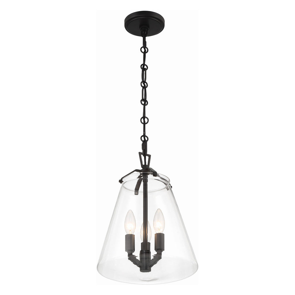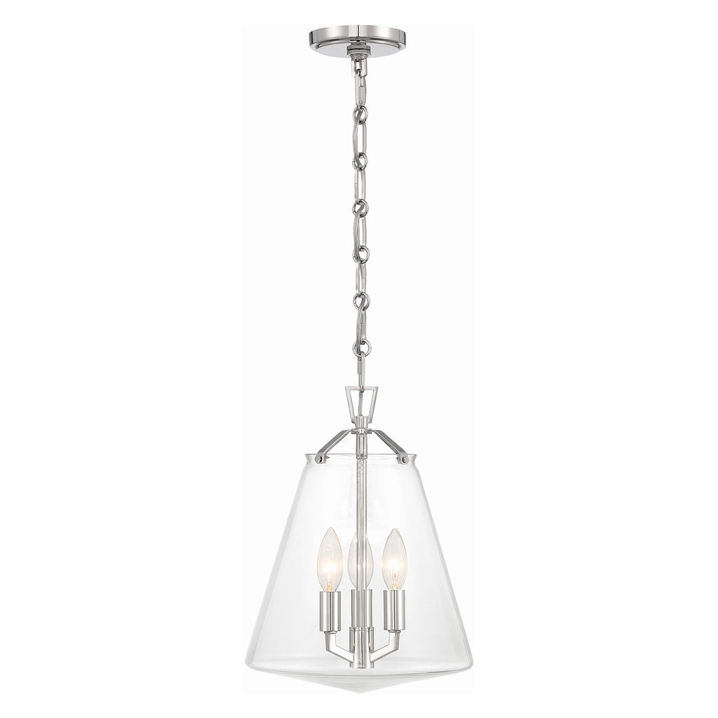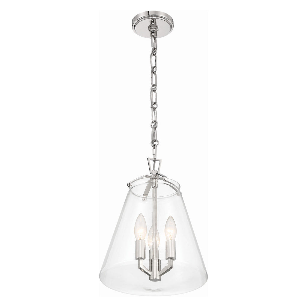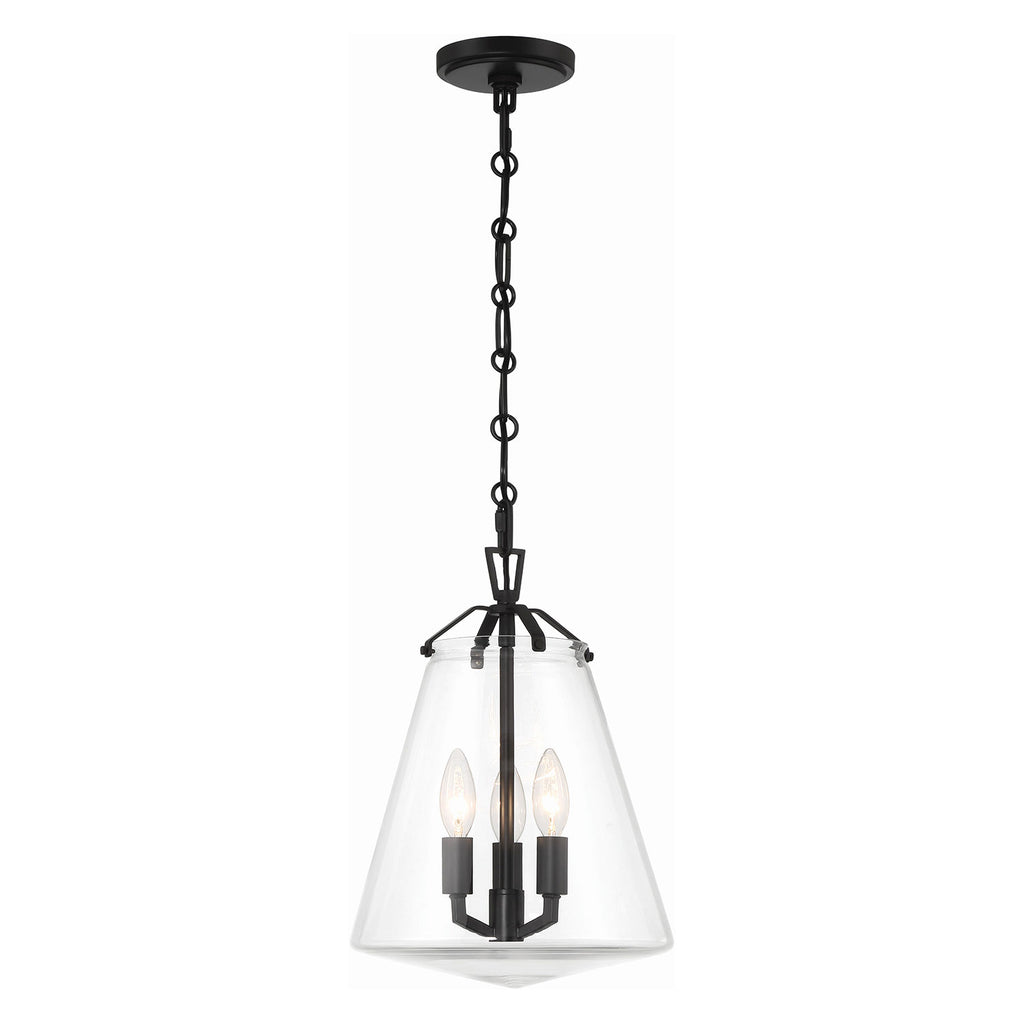 Crystorama is known for its standout lighting, which is exceptional in quality and design. From traditional all-crystal designs to transitional lighting collections, Crystorama offers styles that will match any décor and are always in fashion. A stylish beauty. The Voss Collection is a sleek, enduring design with subtle angular details, offered in various finishes and sizes for your unique space. It’s clear glass cone-shaped pendant is closed on the bottom and fastened with metal on its open top. The patterned chain detail adds a touch of character to its streamlined design. The Voss Collection is not confined to a single style; it is a versatile design that suits a variety of spaces, from minimalist and modern to classic and eclectic. Authorized for use in damp, high-humidity interior locations or protected exterior locations.