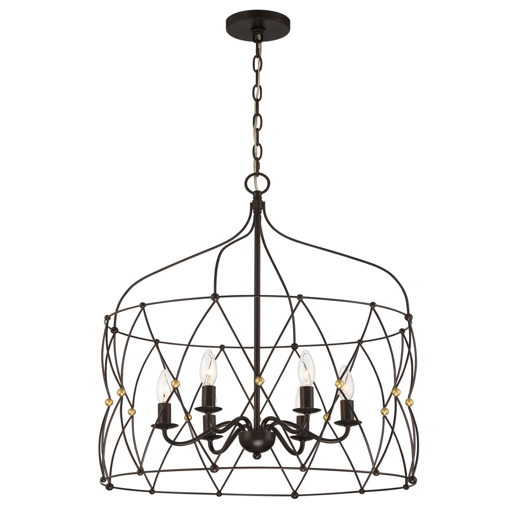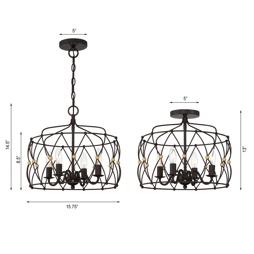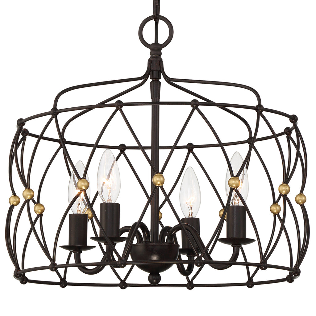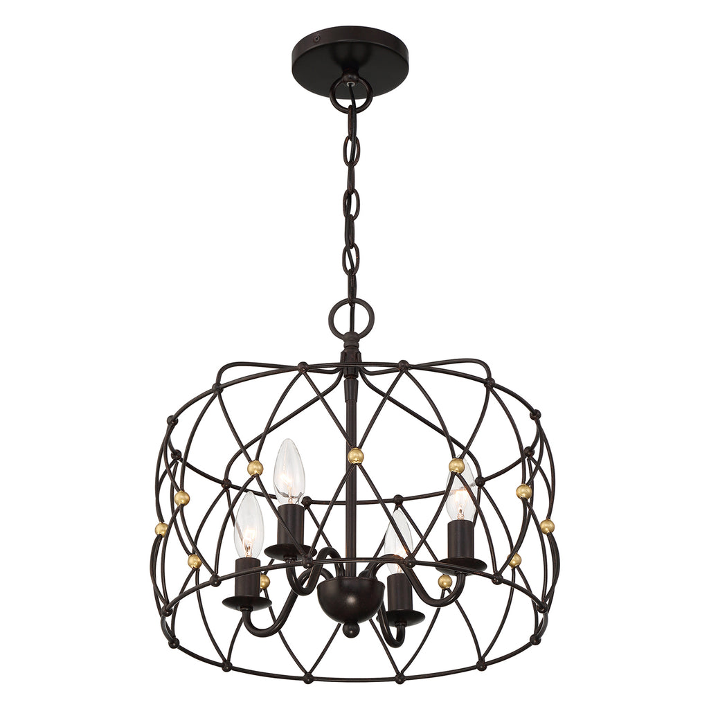 Crystorama is known for its standout lighting, which is exceptional in quality and design. From traditional all-crystal designs to transitional lighting collections, Crystorama offers styles that will match any décor and are always in fashion. The simplicity of bohemian design takes center stage in our spherical Zucca collection. Zucca, which means pumpkin in Italian, features a saucer-shaped metal wire ring frame finished in English Bronze with Antique Gold accents. The woven mixed metal design adds visual interest to a space while still combining just the right sophistication. Whether the look is rustic, industrial, or boho, this light is as versatile as stylish.