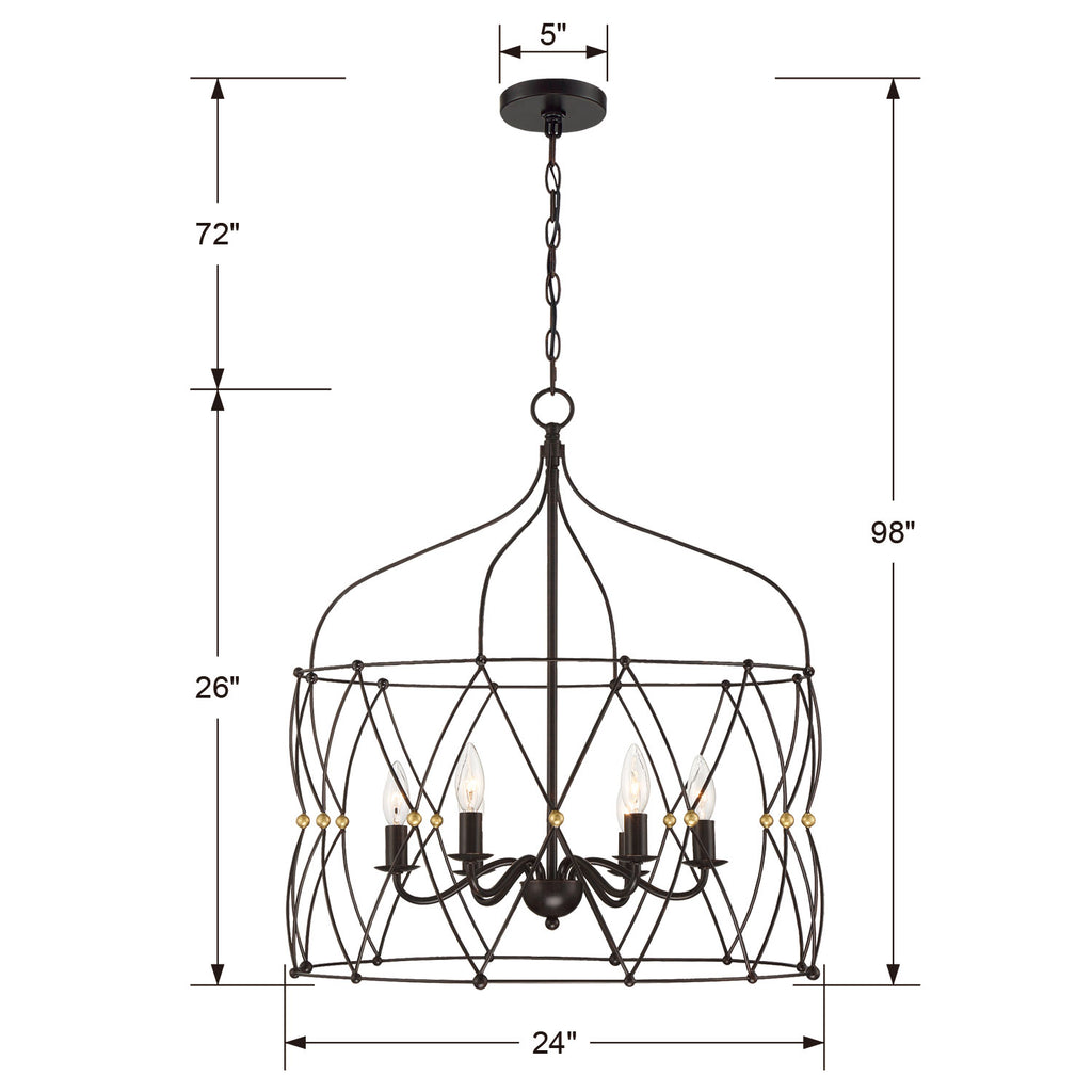 • Max Height: 91.5in (4-Light), 101.5in (6-Light)