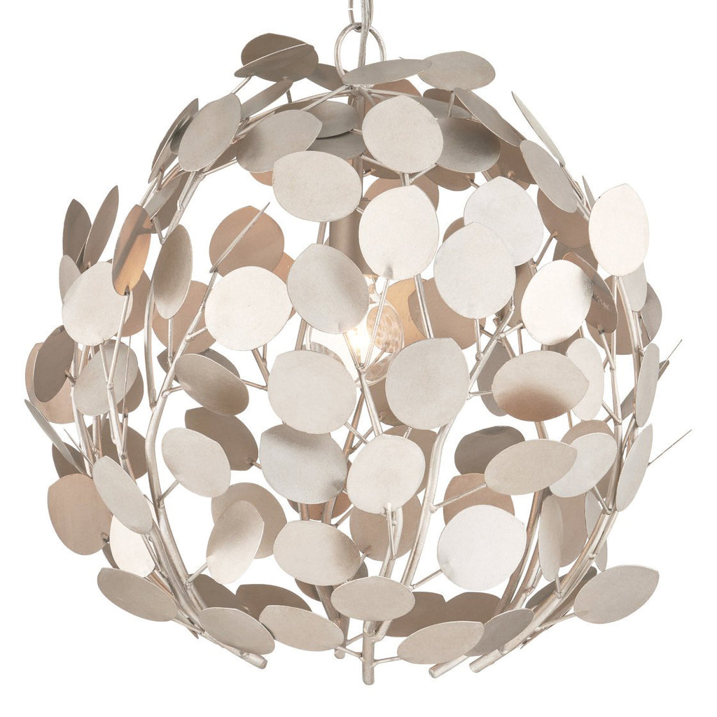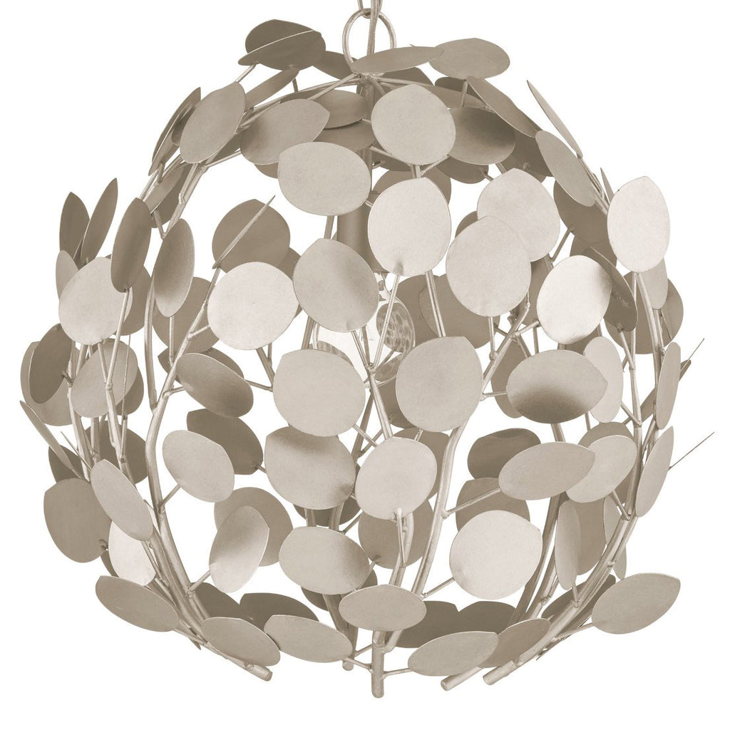 With a lyrical profile of fluttering discs that favor the leaves of its namesake plant, the Lunaria Orb Chandelier is made of wrought iron in a contemporary silver leaf finish. The light from the bulb that illuminates the flowing petals of metal reflect off the finish on this silver chandelier to increase the glow. The nature-inspired creation will add elemental style to a space.